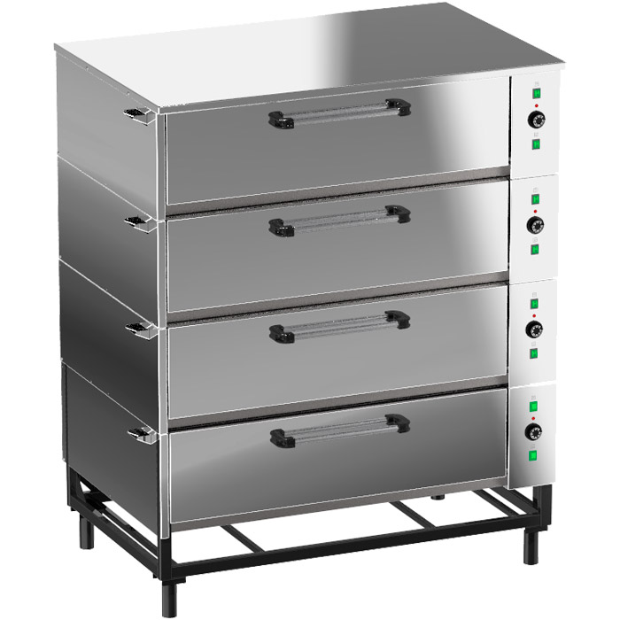 Шкаф жарочно-пекарский электрический Тулаторгтехника ЭШП-4сн(у), нержавеющая стальпредназначен для эксплуатации на кухнях предприятий общественного питания для тепловой обработки продуктов в рабочих камерах шкафов при температуре от 50 до 300С.