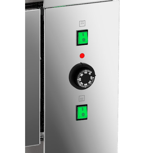- Включение-выключение ТЭНов, установка и автоматическое поддержание необходимой температуры (от 50 до до 300С) в камере осуществляется соответствующими нижним и верхним ТЭНам клавишами и терморегулятором.