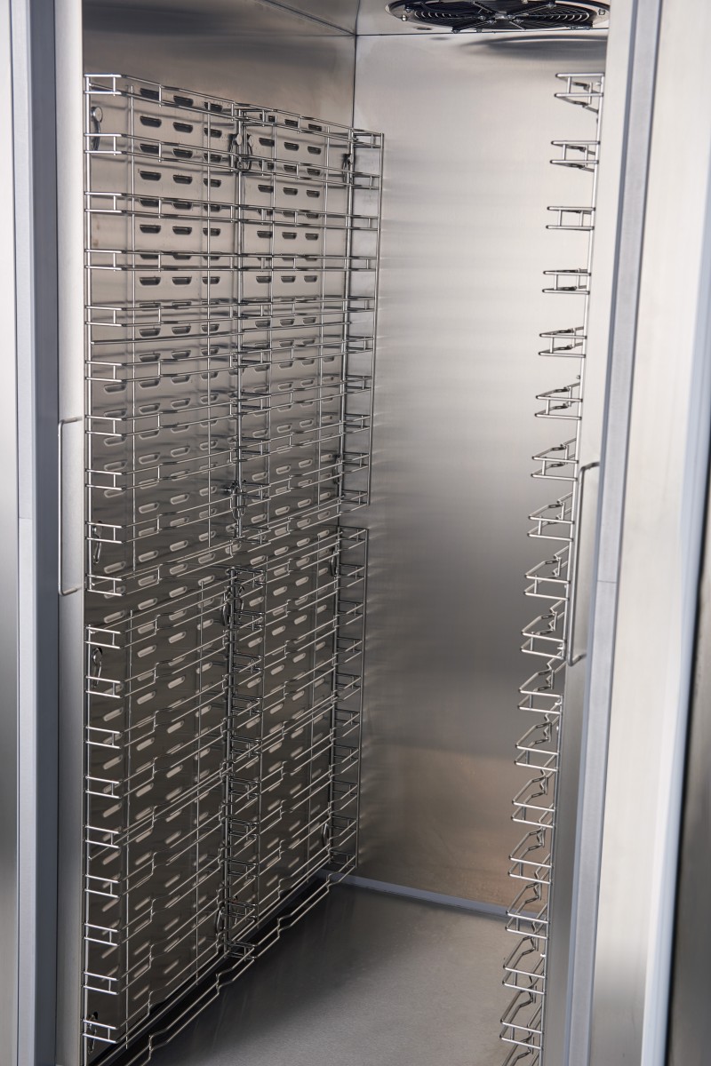 Охлаждение блюд и полуфабрикатов в камереШОК-20-1/1происходит за счет равномерной циркуляции охлажденного воздуха — для этого внутри имеются воздухоохладитель и вентилятор. После завершения процесса автоматически поддерживается температурный режим для хранения продуктов. На панели управления вы можете задать температуру и выбрать режим — ускоренный или деликатный. В дальнейшем вы можете в этом же аппарате разморозить продукт и воспользоваться функцией принудительного оттаивания. Оптимальное решение для повышения эффективности — комбинация аппарата шоковой заморозки с пароконвектоматом.