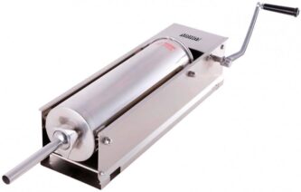 Корпус бункера выполнен из нержавеющей стали. Металл устойчив к высоким нагрузкам, не влияет на вкус начинки. Резервуар вмещает в себя до 35 литров фарша, что позволяет за один рабочий цикл изготовить большую партию колбас. В приборе реализована современная эффективная система выдавливания, а также функция быстрого возврата в исходное положение.