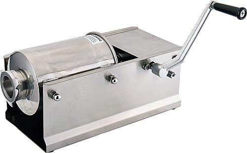 Hurakan HKN-ISH3представляет собой колбасный шприц. Аппарат с механической системой наполнения не требует подключения к сети. Управлять им достаточно просто, при вращении рукоятки поршень продвигается вперед, вытесняя начинку из резервуара. Наличие большого количества насадок в комплекте поставки разного диаметра позволяет изготавливать различные колбасные изделия.