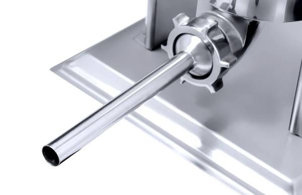 Корпус шприца выполнен из нержавеющей стали, что гарантирует высокую прочность, надежность, устойчивость к коррозии. Для удобства оператора предусмотрена эргономичная рукоятка. Загрузочная емкость вмещает до 15 литров фарша.