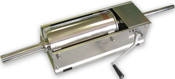 Шприц колбасный Kocateq SH7 модель с большим объемом цилиндра – 7л. Во внутреннем объеме цилиндра расположен поршень. В нижней части цилиндра вмонтирована воронка, на которую надевается оболочка. Модель включает механический редуктор (количество приводов – 2).