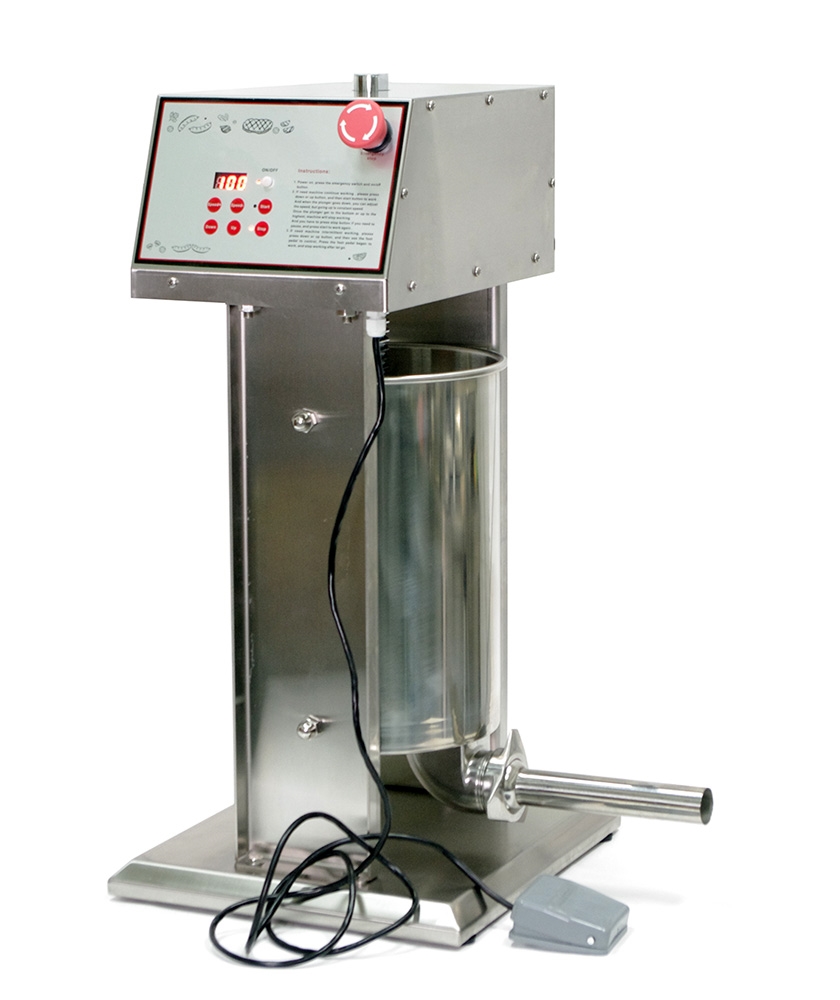 Kocateq SV15GE представляет собой электрический колбасный шприц вертикальной компоновки. Такая конструкция обеспечивает компактность устройства. Аппарат предназначен для приготовления колбас и купат. Он рассчитан на применение в условиях повышенных нагрузок, подходит для оснащения пунктов общественного питания, пищевых производств. Объем загрузочного резервуара составляет 15 литров. На корпусе установлена электронная панель управления с кнопками для регулировки скорости подачи, поднимания и опускания поршня. Модель отличается высокой прочностью, корпус выполнен из нержавеющей стали марки AISI304.