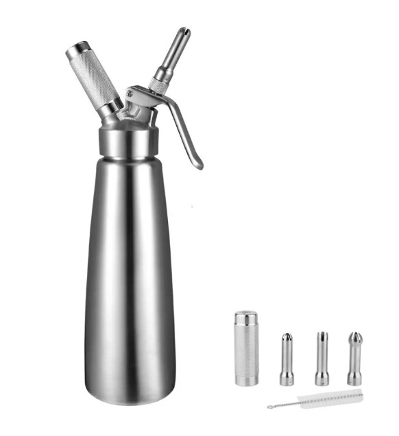 | Комплект поставки | Алюминиевая емкость для взбивания, головная часть сифона, капсула для баллона, насадка-дозатор (нерж.сталь), насадка-дозатор прямая (нерж.сталь), насадка-дозатор тюльпан(нерж.сталь), чистящая щетка |