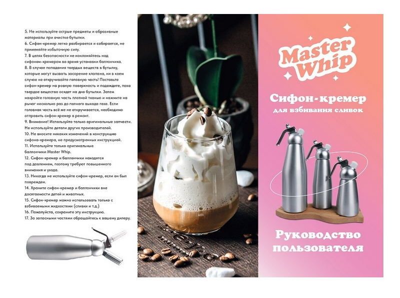 Сифон для взбивания сливок MasterWhip 500 мл купить с гарантией в Москве по низкой цене с доставкой по России у официального дилера. Возможность покупки в кредит