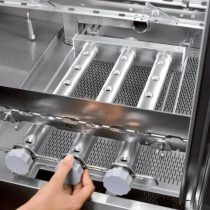 Панель регулировок электромеханического типа. Дисковый регулятор температур, индикатор включения светодиодный. Вытяжная решётка вдоль модуля. Гидпроизолированная рабочая поверхность, выполнена из антикоррозионной стали с зоной сбора жидкости. Модуль может использоваться отдельно, может стать частью кухонной зоны среди приборов подобного рода.