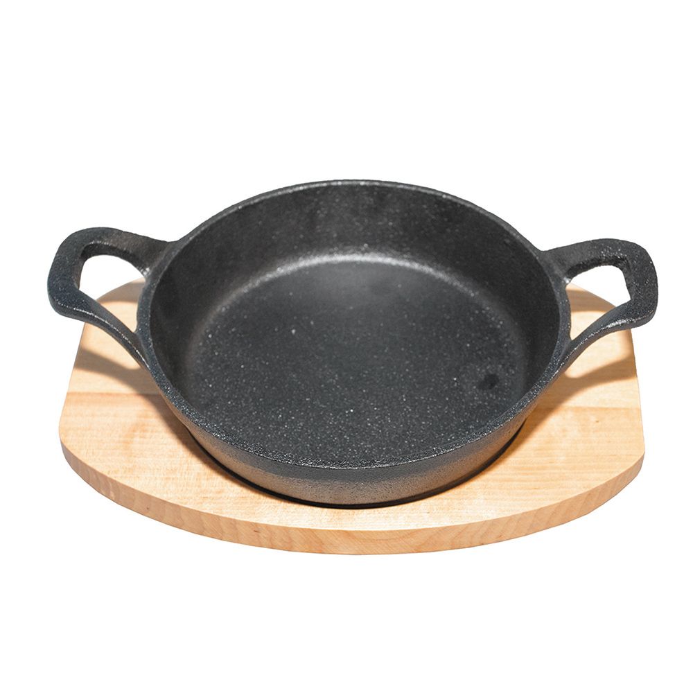 Сковорода чугунная круглая d 14 см на деревянной подставке, P.L. – Proff Chef Line