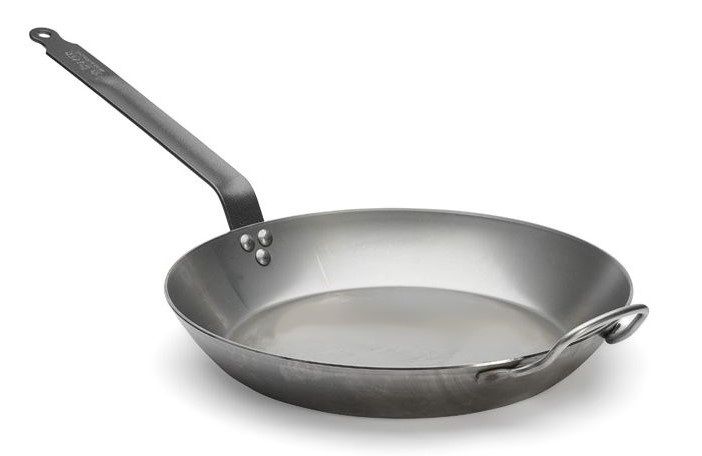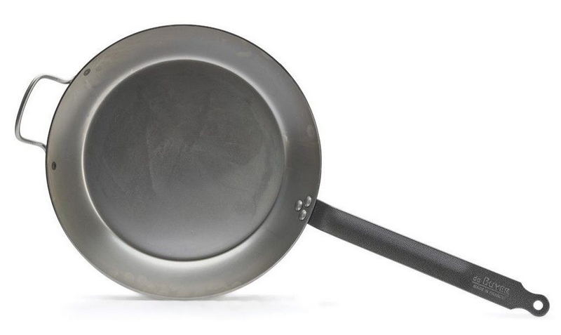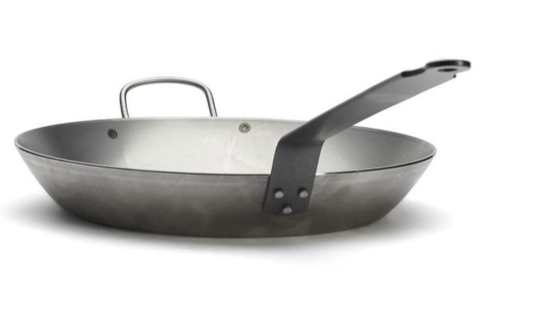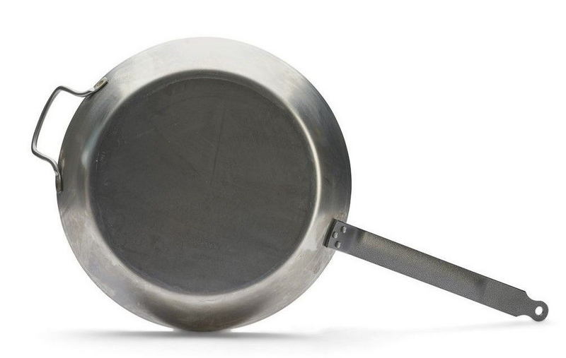 СковородаDe Buyer Carbone Plus d=36см h=4,5см, белая сталь с дополнительной ручкой 5110.36– инвентарь, который может использоваться для жарки и тушения рыбы, морепродуктов, мяса овощей, иных ингредиентов блюд.