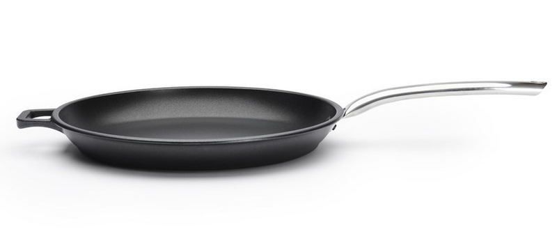 Сковорода оснащается удобной ручкой, которая не нагревается в процессе приготовления блюд.