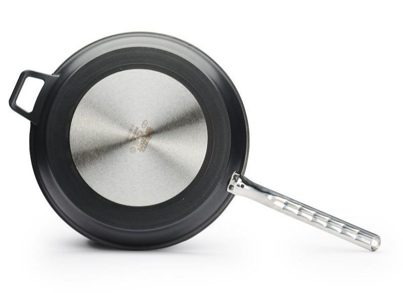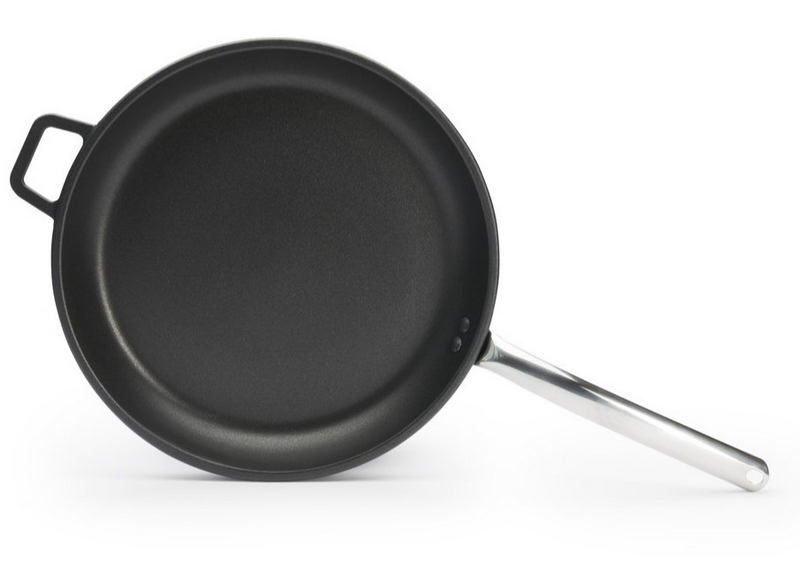 СковородаDe Buyer Choc Extreme d=36см h=4,5см с антипригарным покрытием (индукция)может справляться с повышенными нагрузками на профессиональных кухнях. Этот инвентарь изготавливается из литого пищевого алюминия.