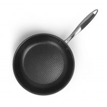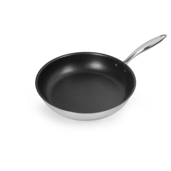 Эргономичная полая ручка сковороды прикреплена надежными клепками, что не позволяет ей нагреваться во время приготовления блюда.