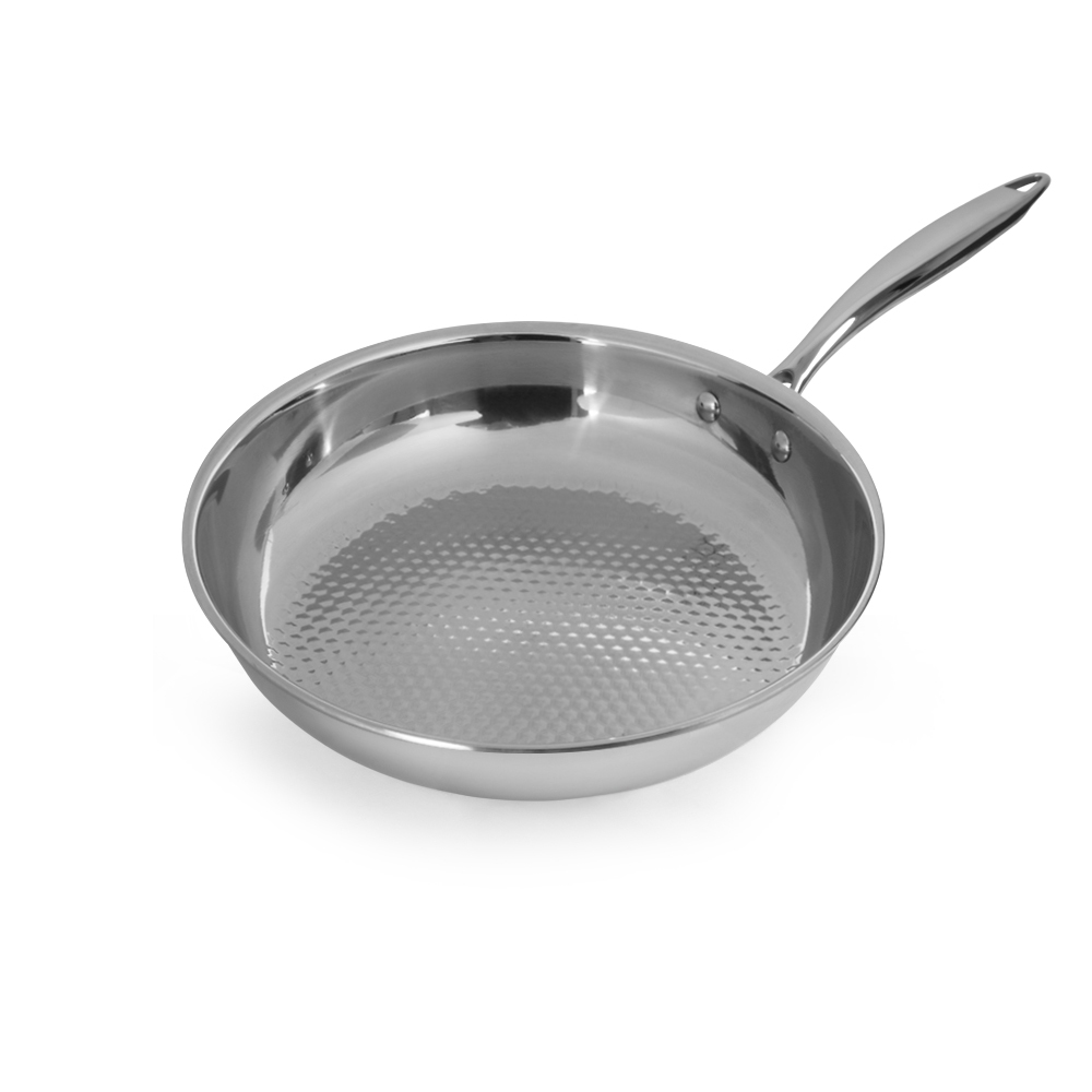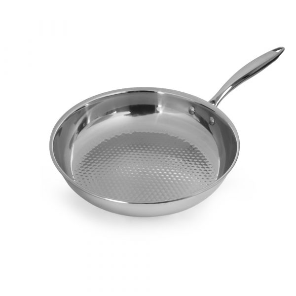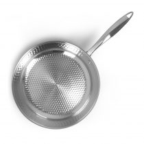 Эргономичная полая ручка сковороды прикреплена надежными клепками, что не позволяет ей нагреваться во время приготовления блюда.