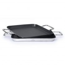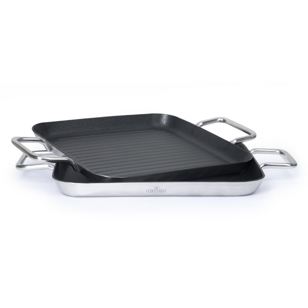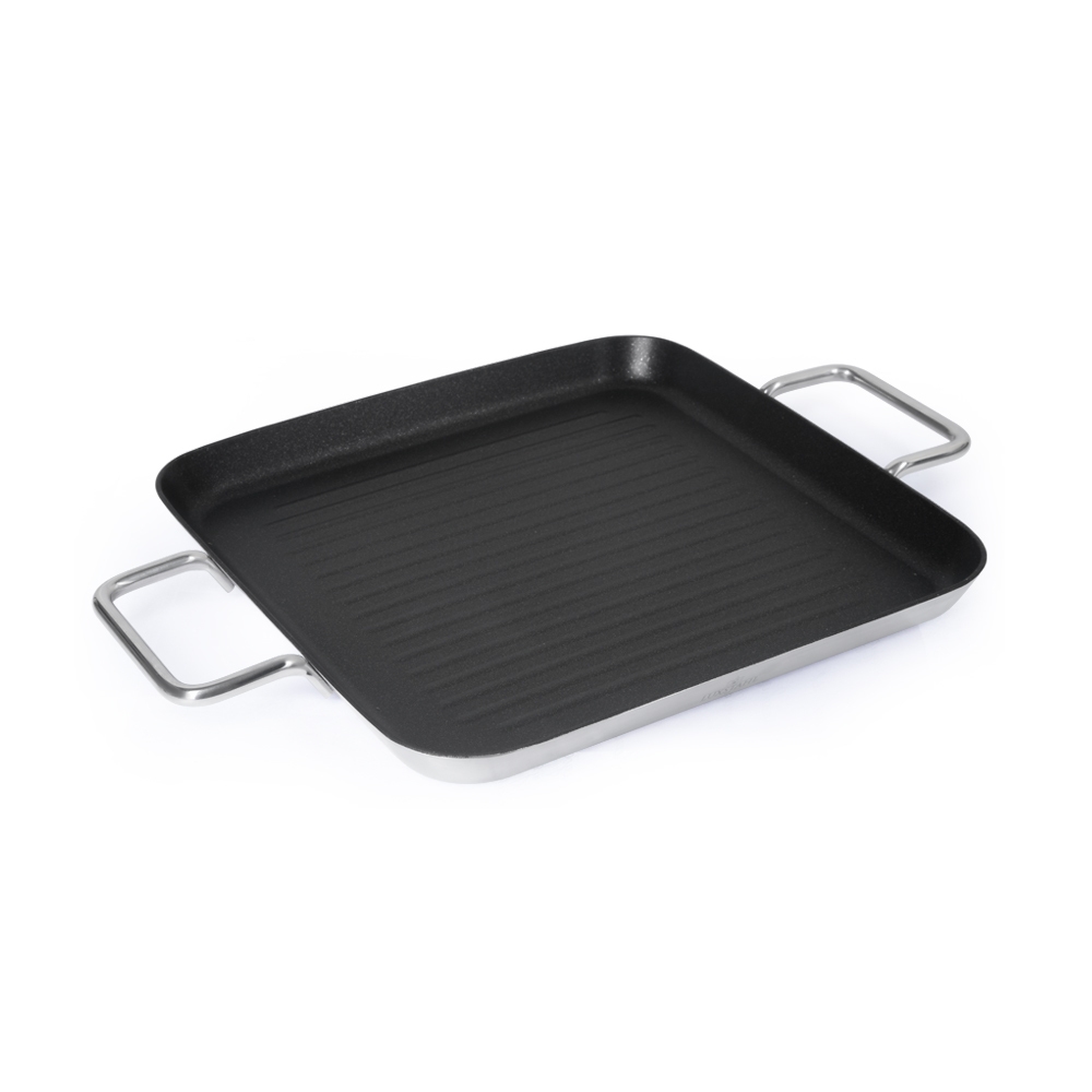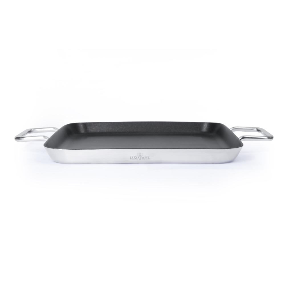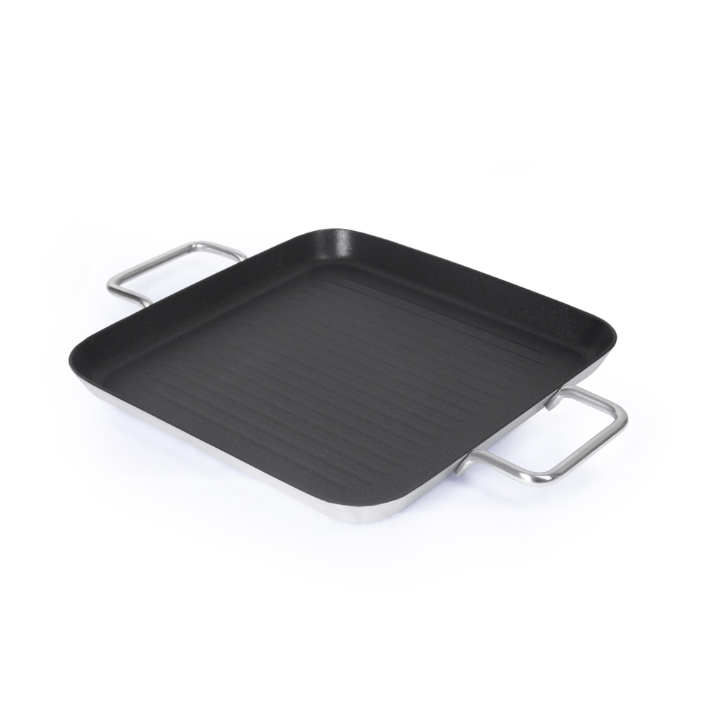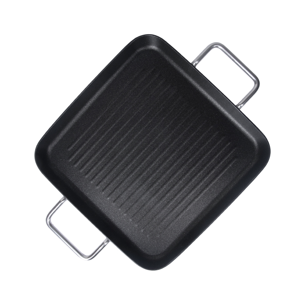 Сковорода-гриль квадратная 260х260 мм нержавеющая сталь, антипригарное покрытие, с двумя ручками, индукция, Luxstahl