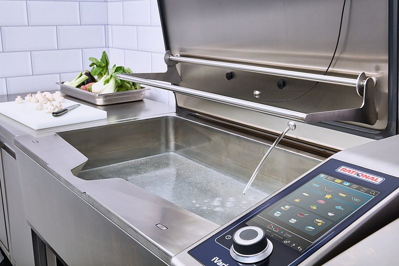 Сковорода многофункциональная RATIONAL iVario Pro Lпредназначена для приготовления широкого спектра блюд путем жарки, варки, тушения, обжаривания во фритюре и готовки в вакууме с частичным контролем со стороны повара.