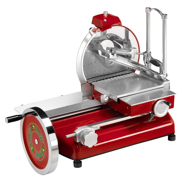 СлайсерVV350 AFV350VOLANOпредназначен для нарезки на одинаковые ломтики колбасных и мясных изделий, твёрдого сыра и других продуктов на предприятиях общественного питания и торговли. Позволяют быстро нарезать большие объёмы продукции на ровные и аккуратные ломтики абсолютно одинакового размера, что гораздо удобнее и продуктивнее ручной нарезки.