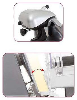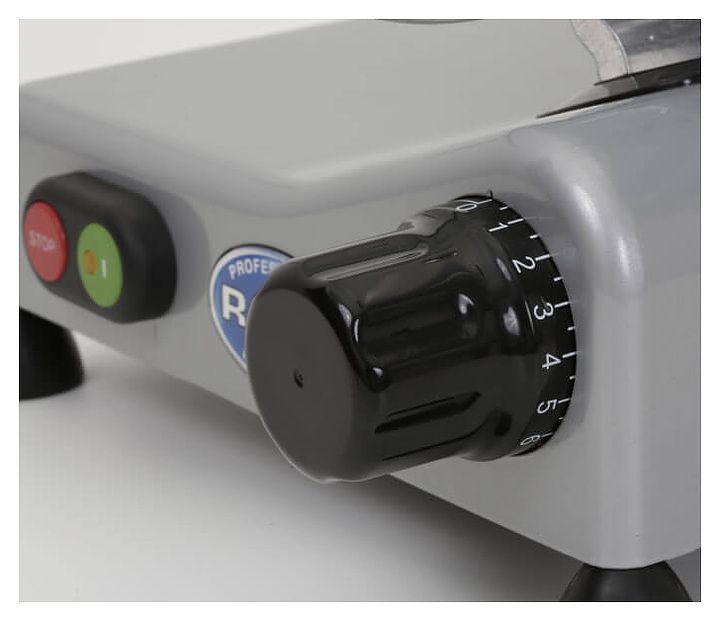 • Вращающаяся рукоятка для точной регулировки толщины нарезки;
