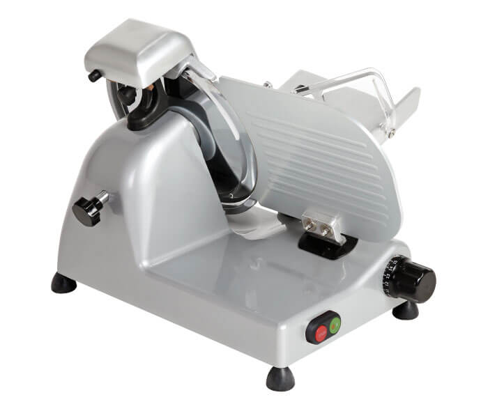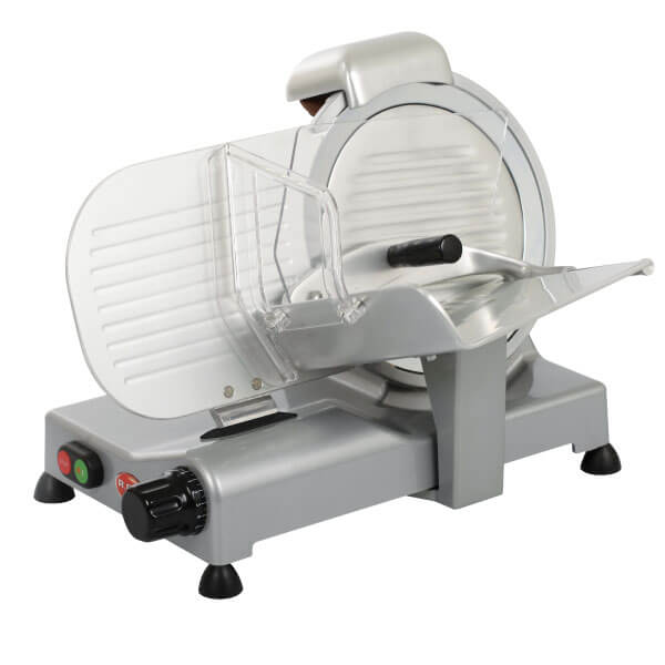 Слайсер RGV NEW LUSSO 22 GSпредназначен для использования на предприятиях общественного питания, торговли, а также в производственных цехах, деятельность которых связана с выпуском гастрономических товаров, для нарезки мяса, сыра, колбасных изделий и других продуктов питания на ровные и равные ломтики. Мотор с функцией принудительной вентиляции — исключает перегрев оборудования, работает практически бесшумно. Слайсер оснащен фиксированным устройством для заточки ножа с двойным наждаком. Поддон для продуктов и перемычка для регулирования толщины среза выполнены из алюминия, отполированного путем анодирования.