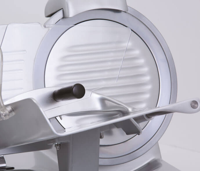 • Рукоятка управления лезвием установлена на двойной шарикоподшипник, что делает работу слайсера практически бесшумной;
