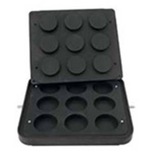В комплект входят две пластины, изготовленные из теплопроводящего сплава и снабженные антипригарным покрытием. На одной из них выдавлены круглые выемки, а на другой сделаны выпуклости такой же формы, но меньшего размера. Первая пластина ставится на неподвижную часть тарталетницы, а вторая крепится к поворотной. В процессе выпекания за цикл получаются 9 одинаковых по размеру круглых тарталеток. За счет нагрева каждой из пластин изделия получаются равномерно пропеченными.