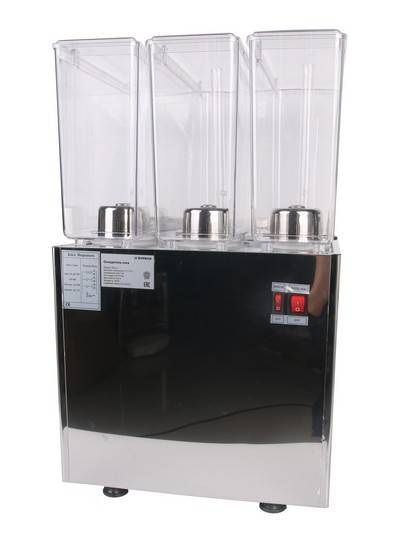 - снабжен 3-мя краниками для разлива охлажденных соков, с защитой от протекания;