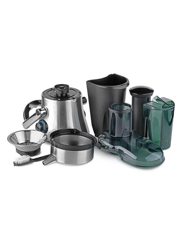Viatto VA-JE850PW— универсальная соковыжималка центробежного типа, предназначенная для приготовления сока из различных фруктов и овощей. Модель подходит для применения не только в бытовых условиях, но и в коммерческой сфере. Она рассчитана на установку в пунктах общественного питания и торговых точках. Современная система экстракции позволяет отжать сок на 80%. Аппарат оснащен системой автоматического сброса жмыха в пластиковый контейнер объемом 1,5 литра. Сок сливается в емкость объемом 0,7 литра. На корпусе установлена механическая панель управления, присутствует 2 скорости вращения.