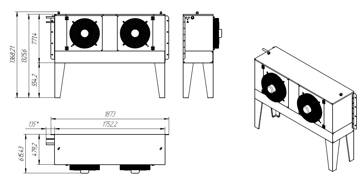 - корпус из оцинкованной стали толщиной 1 мм с полимерным покрытием (порошковая краска. RAL 9016, белый)