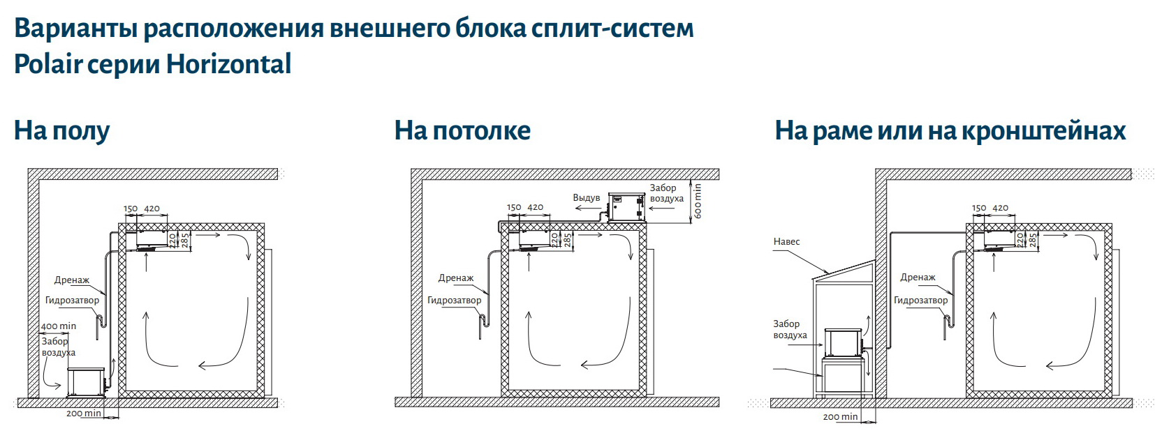 Стандартная комплектация сплит-систем Polair Horizontal:
