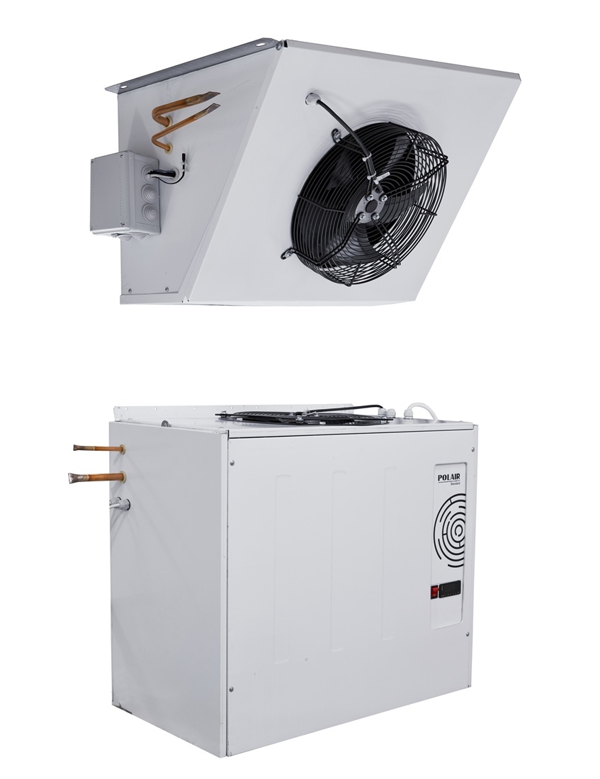 Сплит-система Polair SM342S— альтернатива холодильному моноблоку аналогичной мощности, установка которого невозможна из-за недостатка места или отсутствия вентиляции в помещении. Внешний блок (ККБ) можно установить на улице или в подходящем помещении на расстоянии от холодильной камеры, тогда как внутренний блок (воздухоохладитель) будет находиться внутри камеры. Соединяют оба компонента сплит-системы медные трубки (в комплекте — длиной 5 метров). Для бесперебойной работы внешнего блока в условиях низкой температуры окружающей среды дополнительно приобретается и устанавливается зимний комплект.