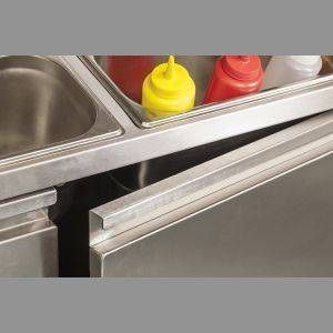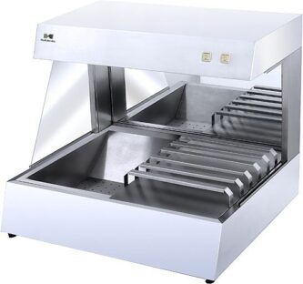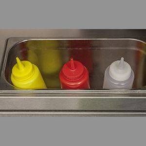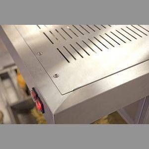 ROBOLABS STF-080 с подогревомпредставляет собой станцию для подогрева и фасовки картофеля фри. Температура нагрева регулируется в диапазоне от +30 до +90 °С. Корпус выполнен из устойчивой к коррозии нержавеющей стали AISI304. Подогрев идет снизу и сверху. В конструкции предусмотрена перфорированная емкость для хранения картофеля, решетка для размещения расфасованных пакетов, отсеки для хранения упаковки. Для хранения инвентаря используется специальная навесная емкость. В передней части присутствуют ниши для установки гастрономических емкостей формата GN1/3.