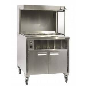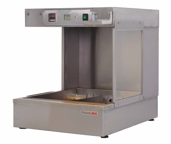ROBOLABS RLFSL-IR6представляет собой настольную станцию по фасовке картофеля. Оборудование предназначено для оснащения пунктов общественного питания, торговых точек. Она позволяет поддерживать картофель в горячем состоянии. Для этого в конструкции предусмотрены керамические нагревательные элементы, установленные в верхней части, а также система подогрева ванны в нижней части. Аппарат оснащен поперечным разделителем, что дает возможность использовать станцию для нескольких типов продуктов. Корпус произведен из нержавеющей стали. Для изготовления некоторых элементов использовалась нержавеющая сталь AISI304.