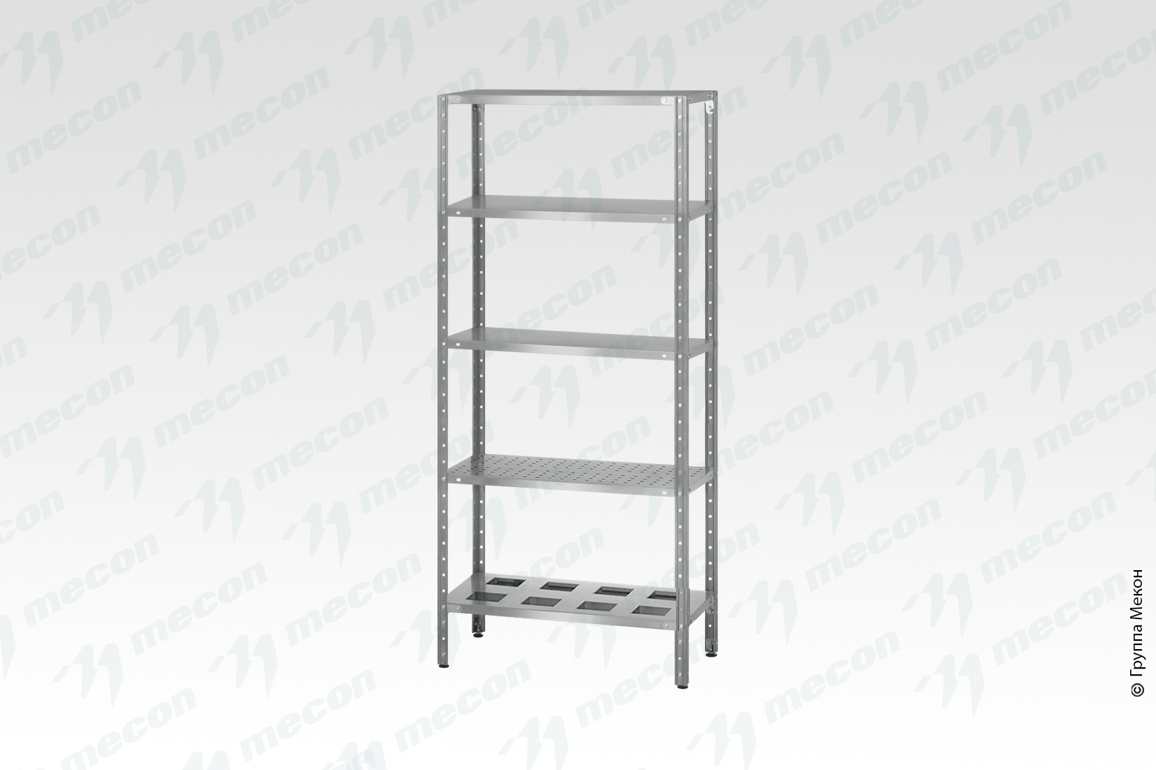 Стеллаж полочный СПЛ — 1500*600*1800 «Norma» (стойки цинк; полка перфорация 5 шт. нерж.)