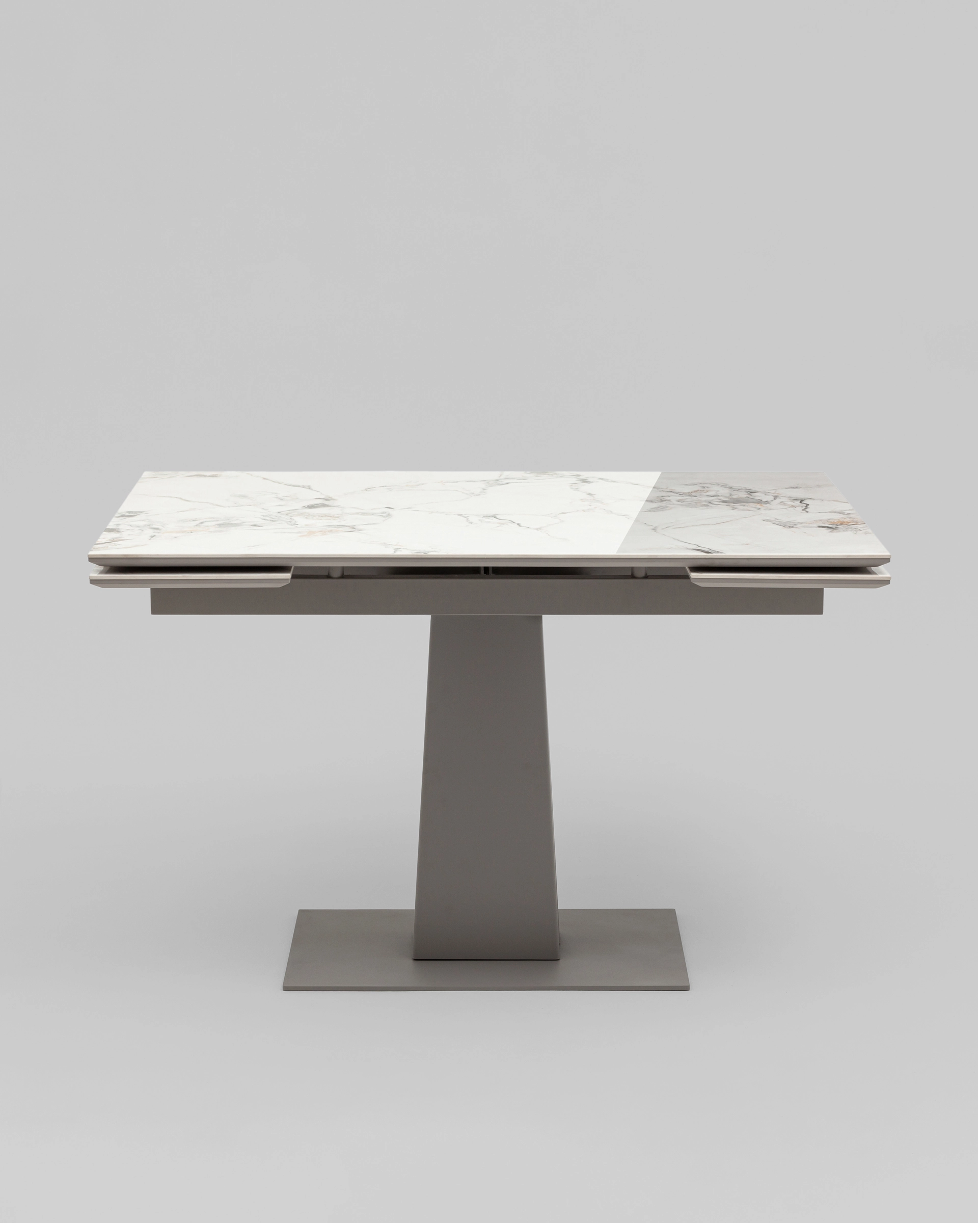 Столешница выполнена из высококачественной керамики (оттенок Cold jade) — материала, отличающегося не только эстетикой, но и высокой прочностью. Её мраморная текстура придаёт столу благородный вид, а также гарантирует устойчивость к влаге, загрязнениям и температурным перепадам.Материал не подвержен появлению пятен, царапин и прост в уходе — всё это делает стол идеальным для ежедневного использования.