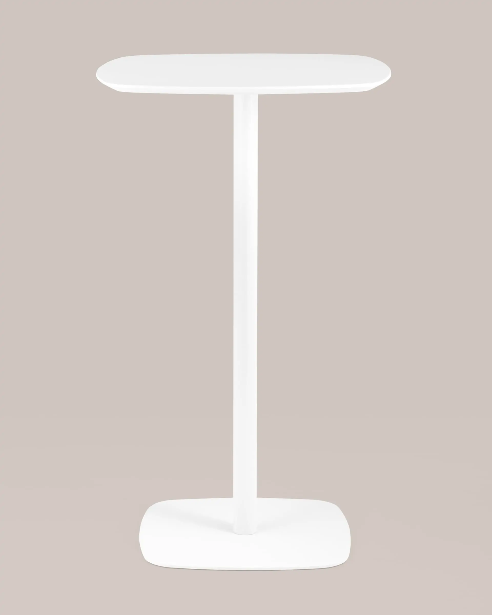 Барный стол «Form» размером 60×60 см выполнен в минималистичном стиле. Квадратная столешница из МДФ покрыта белым шпоном, придавая изделию современный и элегантный вид. Стол опирается на одну центральную металлическую ножку белого цвета, обеспечивающую устойчивость и гармонично сочетающуюся со столешницей. Компактные размеры и лаконичный дизайн делают этот стол идеальным для небольших кухонь, баров или кафе, добавляя светлые акценты в интерьер.