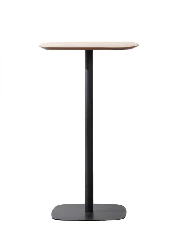 Компактная столешница 60*60 см выполнена из МДФ с покрытием из шпона в оттенке светлого дерева. Устойчивое основание изготовлено из металла в черном цвете.
