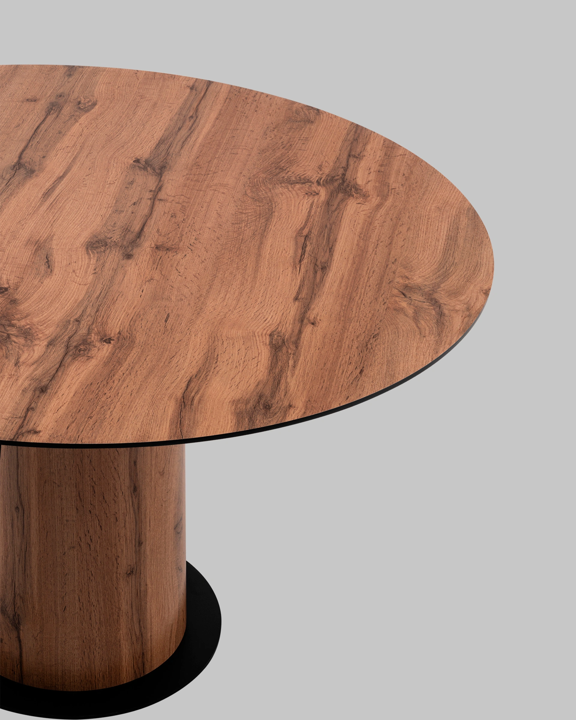Круглый стол Пулон с отделкой под дуб вотан — это эффектное решение для современной кухни, обеденной зоны или уютного кафе. Его внешний вид вдохновлён натуральной древесиной с характерной текстурой, создающей атмосферу тепла и уюта. Универсальный тёплый коричневый оттенок делает модель подходящей как для светлых, так и для контрастных интерьеров.