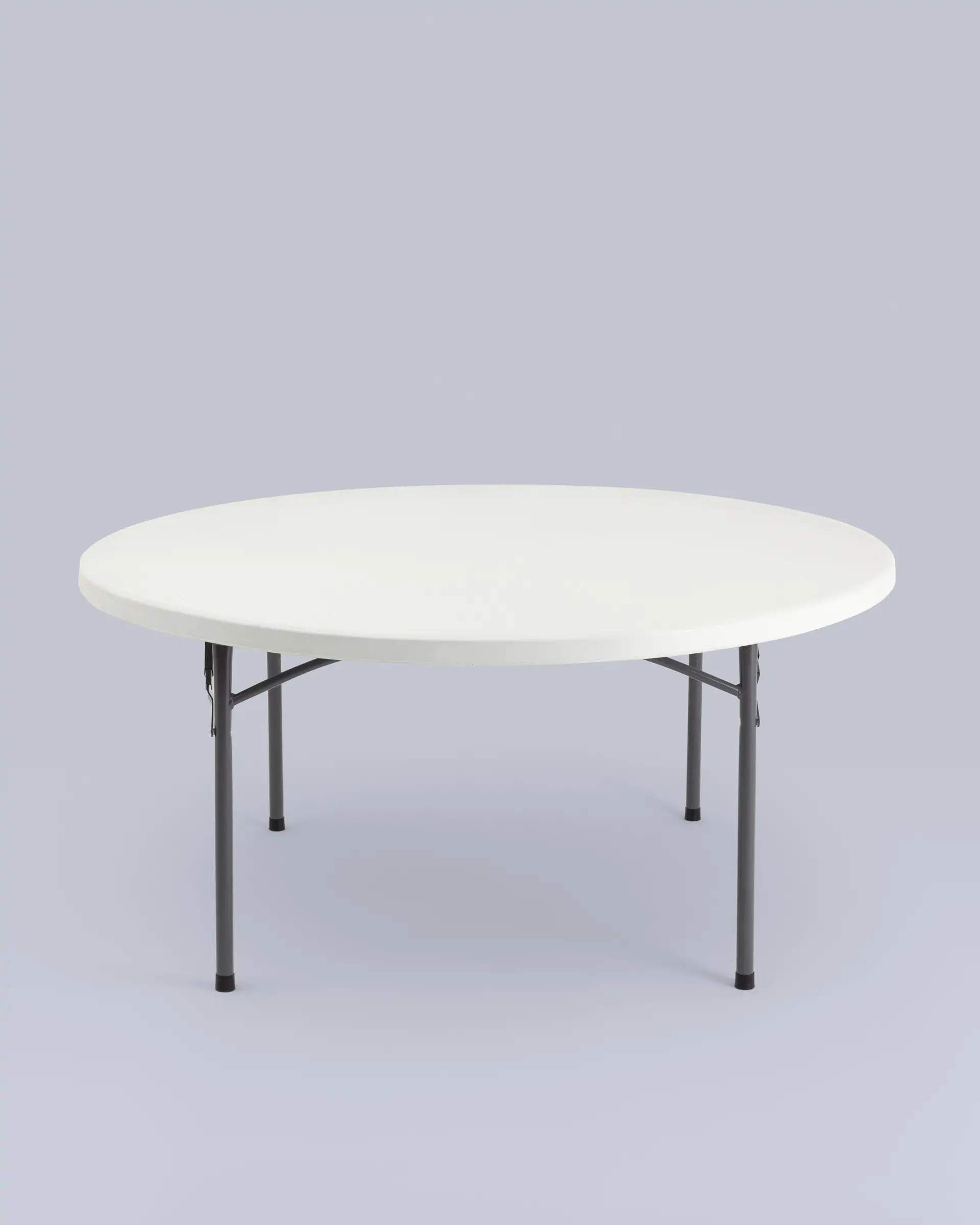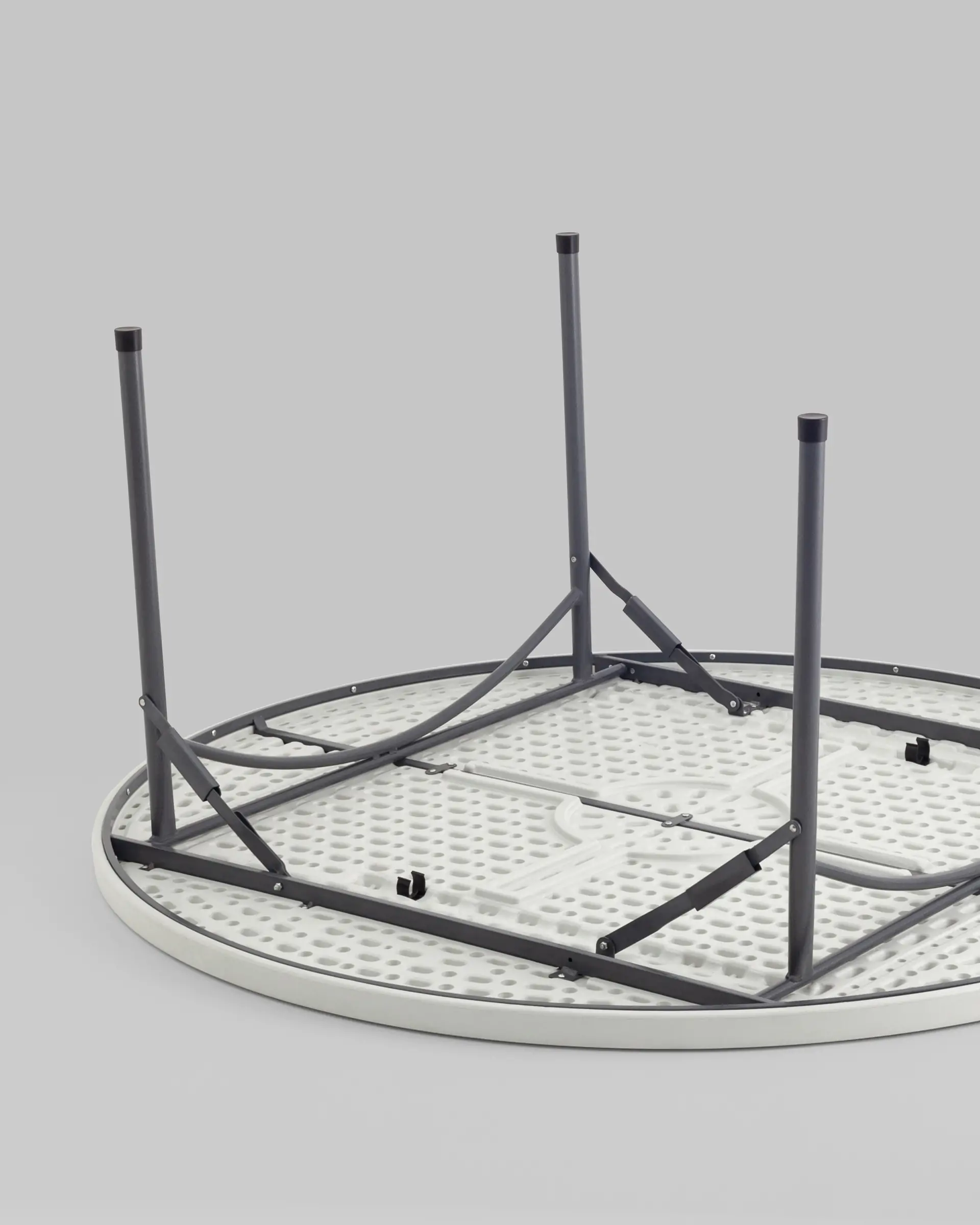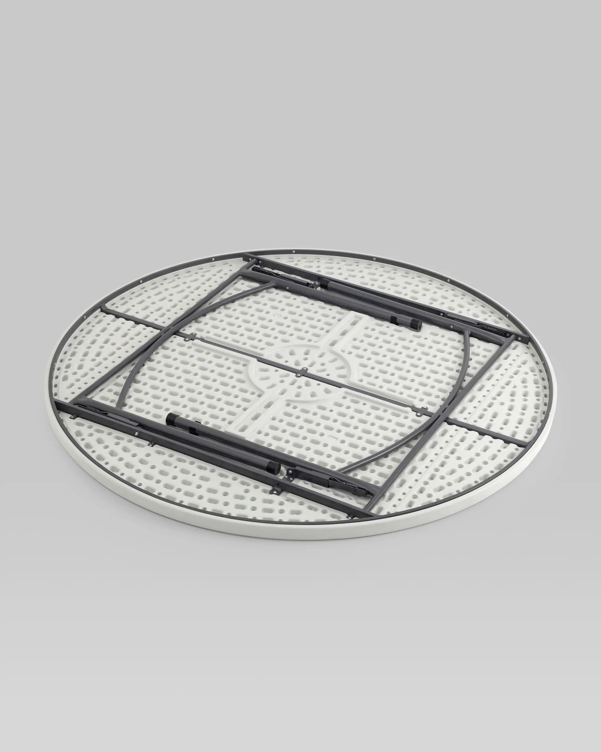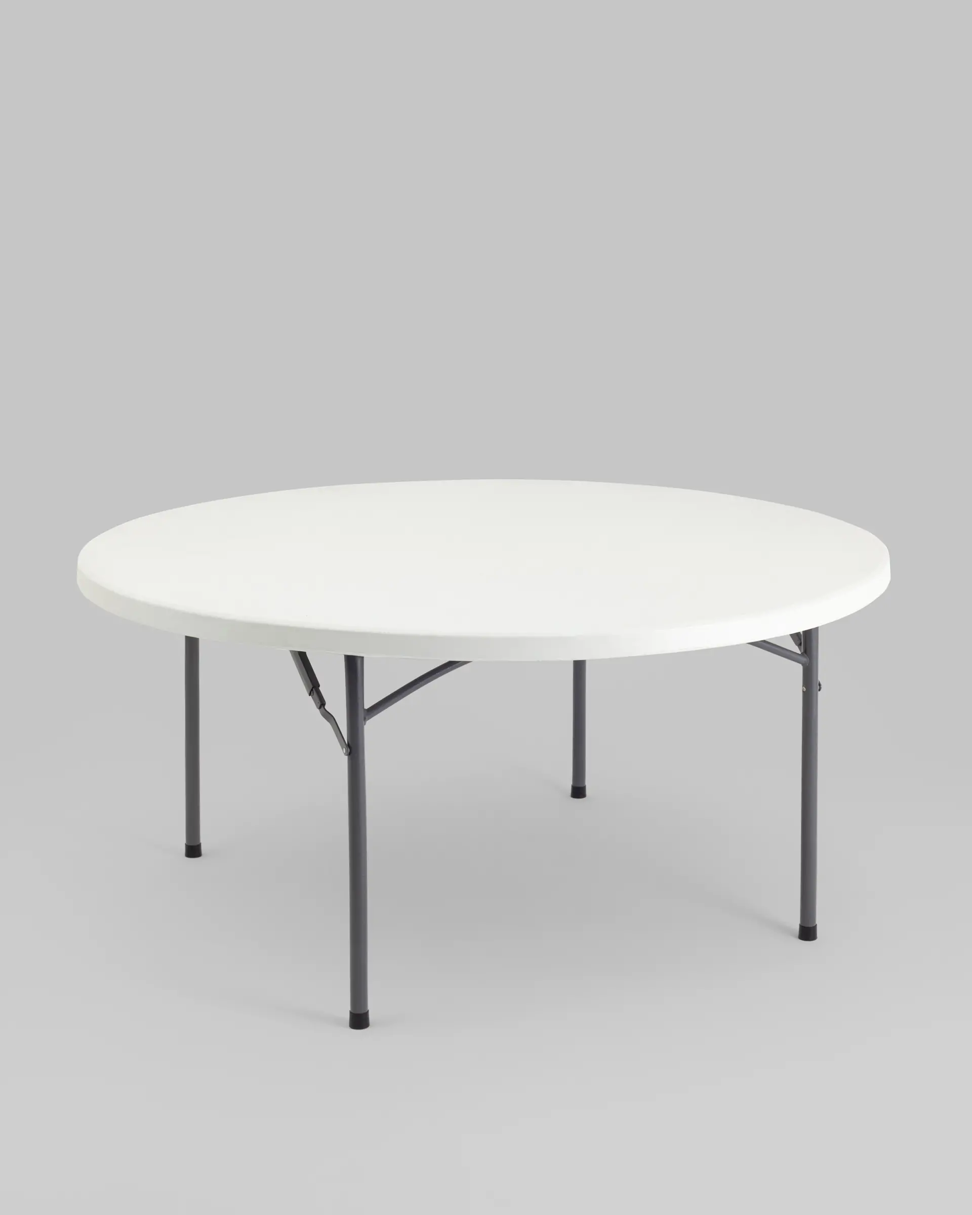 Стол круглый, 160*74 см. Для каркаса используется стальная труба особой прочности 32*1 мм, а столешница, толщиной 5 см, выполнена из 100% не переработанного полиэтилена HDPE (полиэтилен высокой плотности). Считается одним из более безопасных видов пластика. HDPE пластик выдерживает высокие нагрузки, не трескается при ударной нагрузке, эластичен в диапазоне температур от –70 до +100 °С.