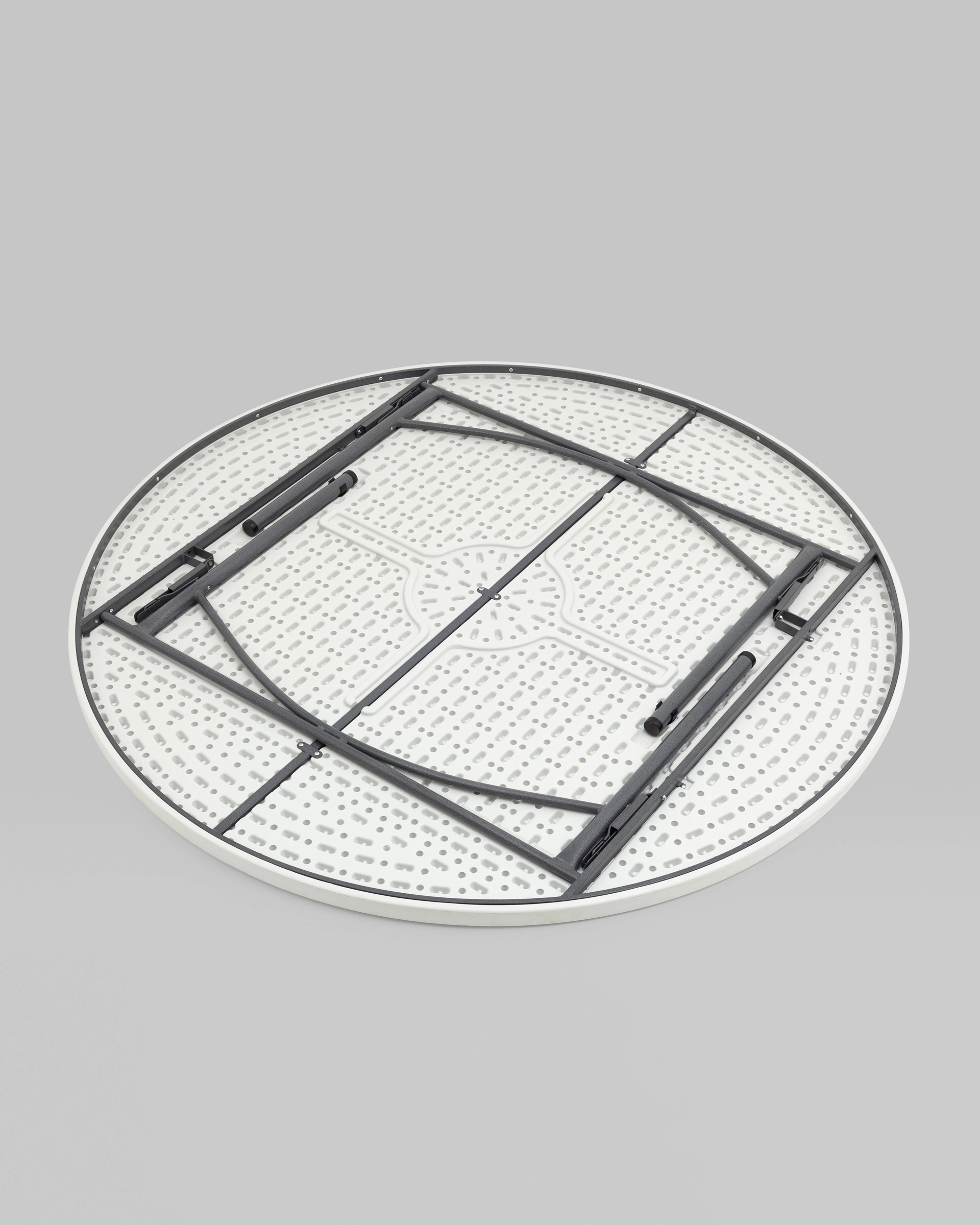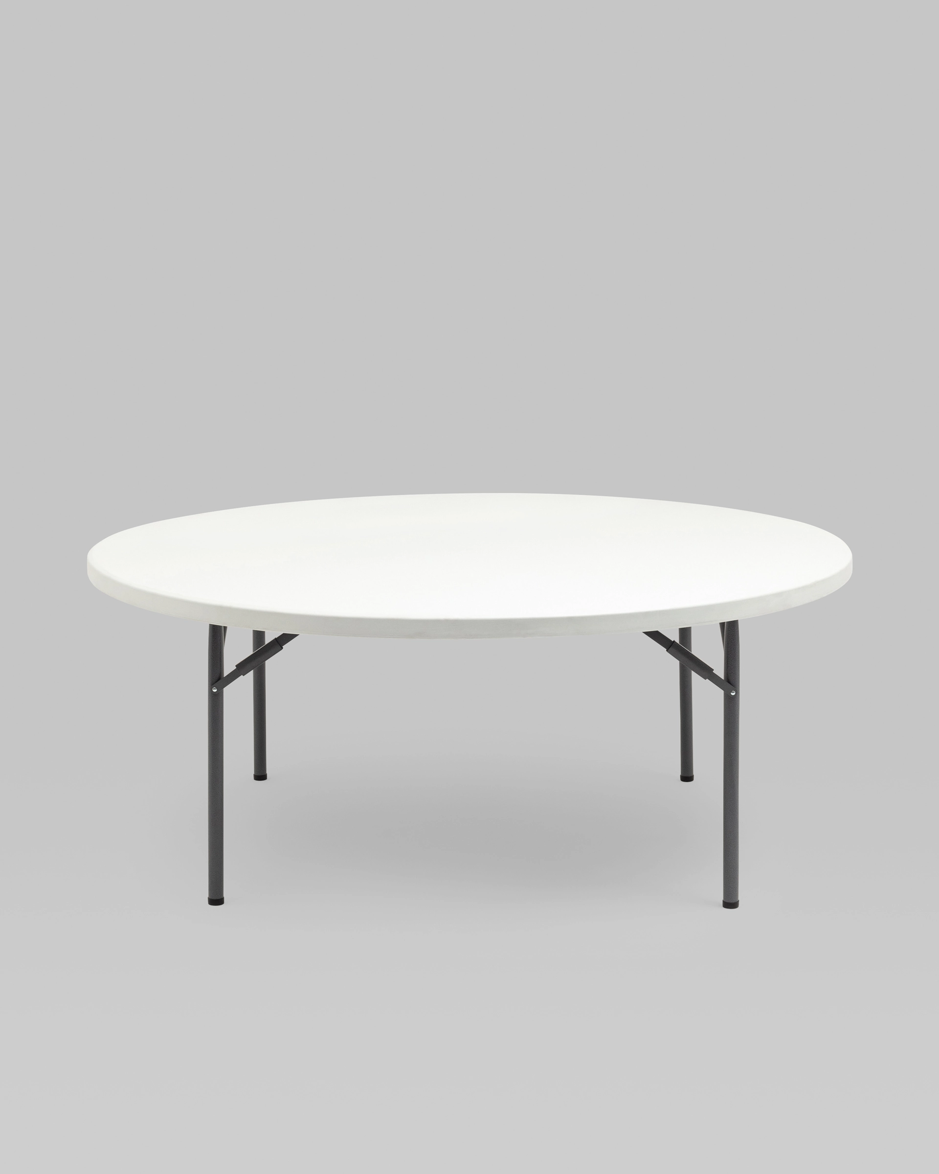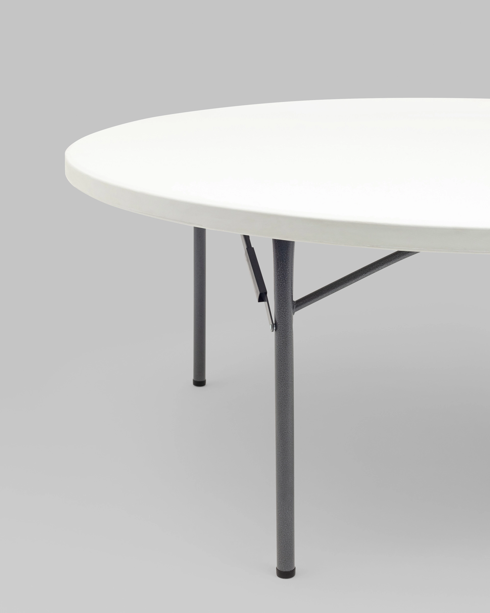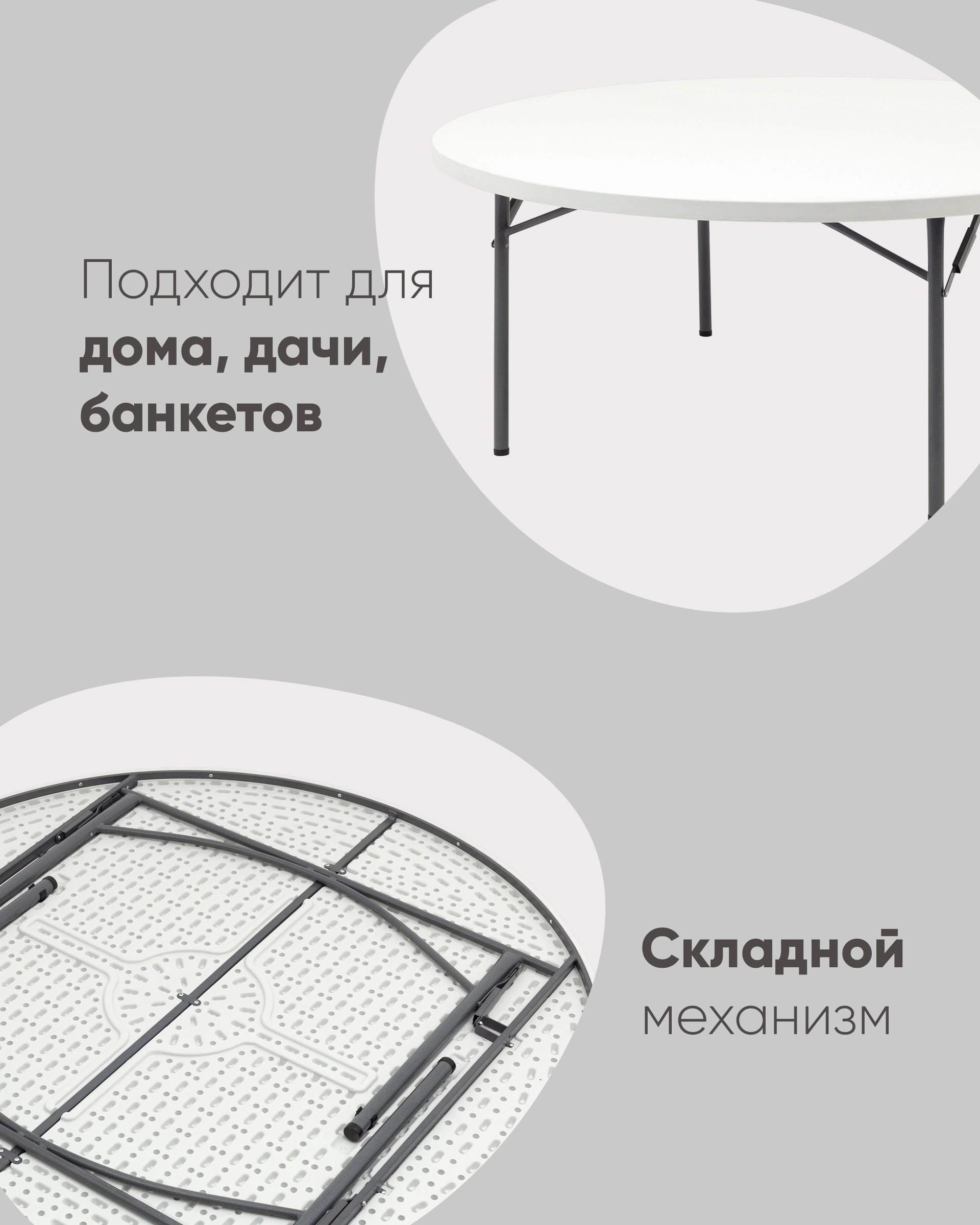 Стол круглый, 180*74 см. Для каркаса используется стальная труба особой прочности 32*1 мм, а столешница, толщиной 5 см, выполнена из 100% не переработанного полиэтилена HDPE (полиэтилен высокой плотности). Считается одним из более безопасных видов пластика. HDPE пластик выдерживает высокие нагрузки, не трескается при ударной нагрузке, эластичен в диапазоне температур от –70 до +100 °С.