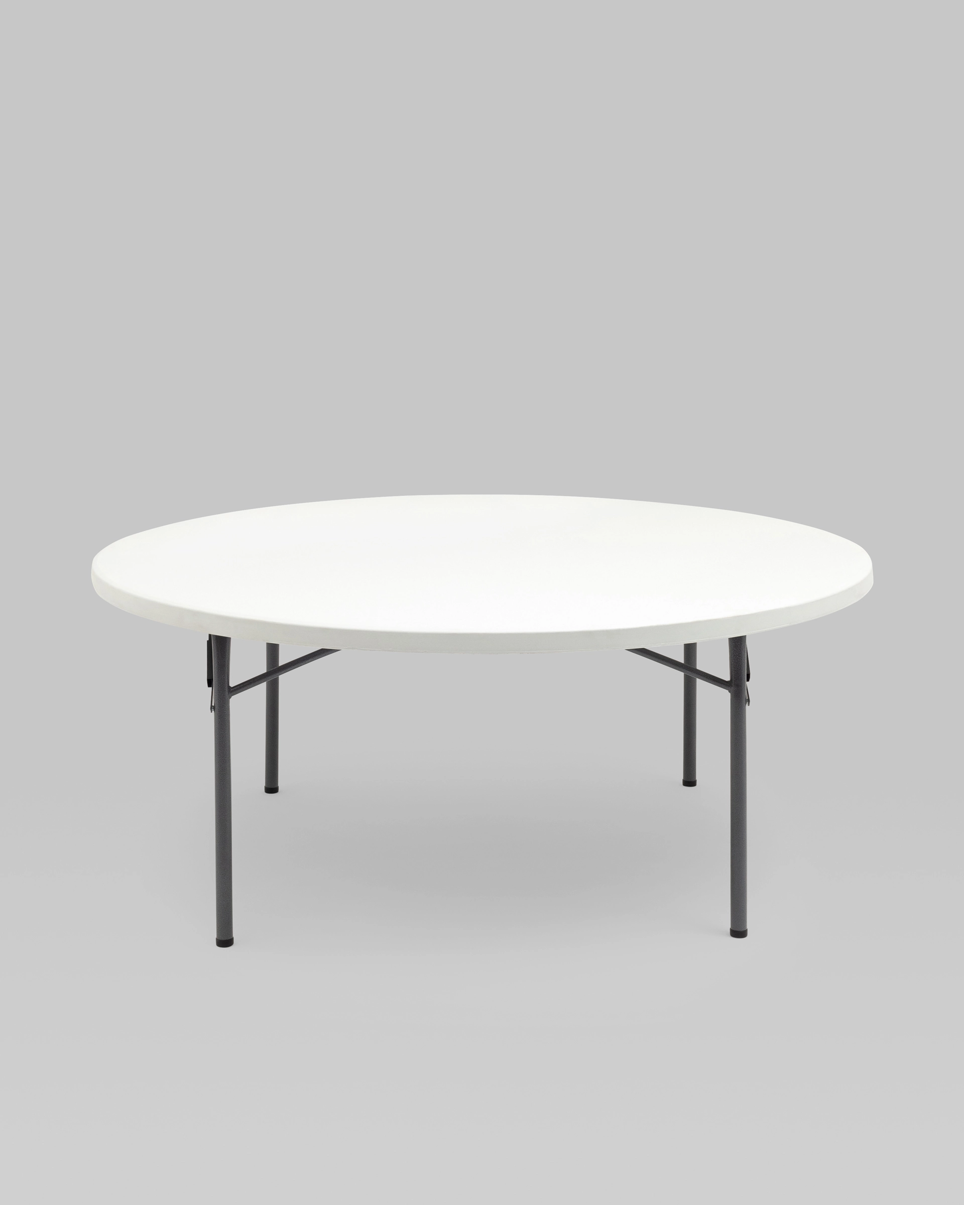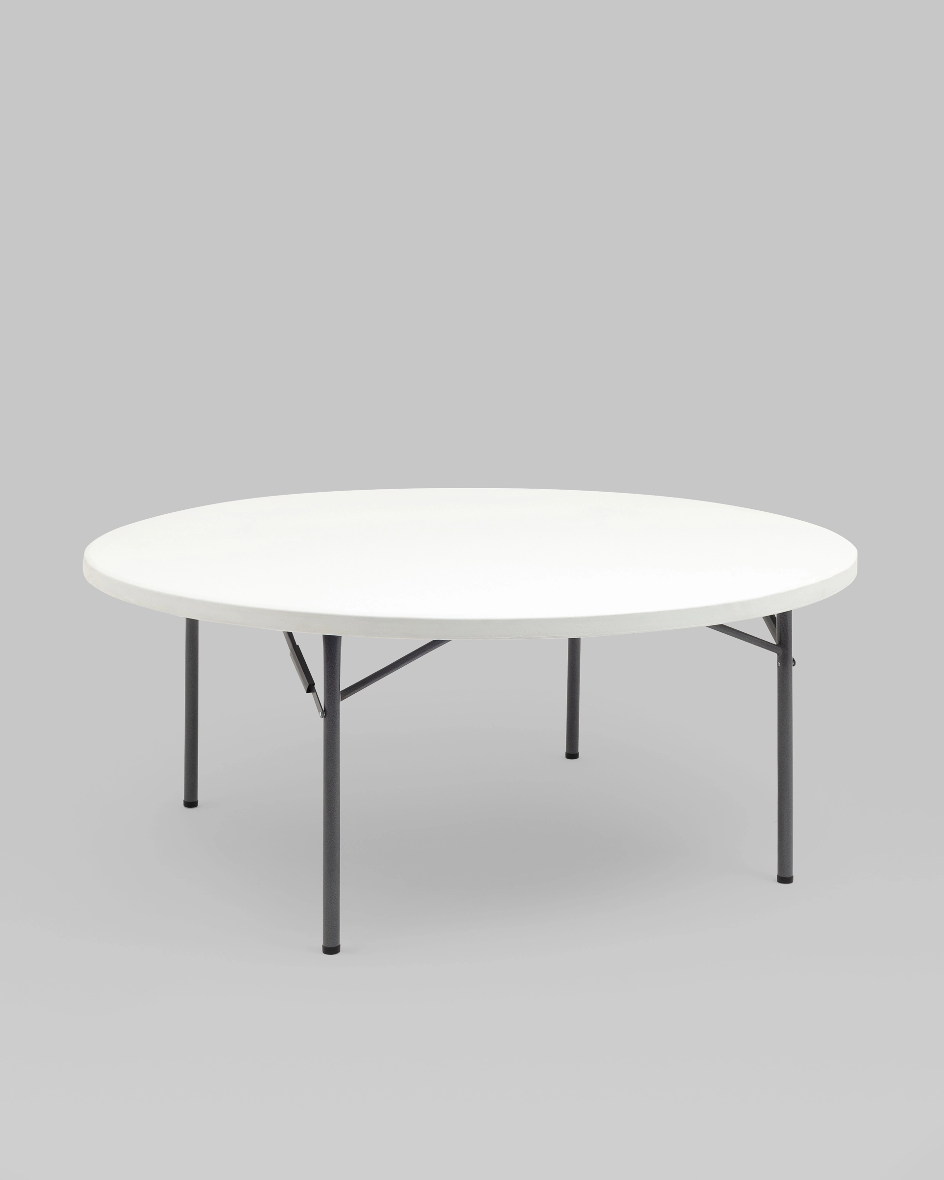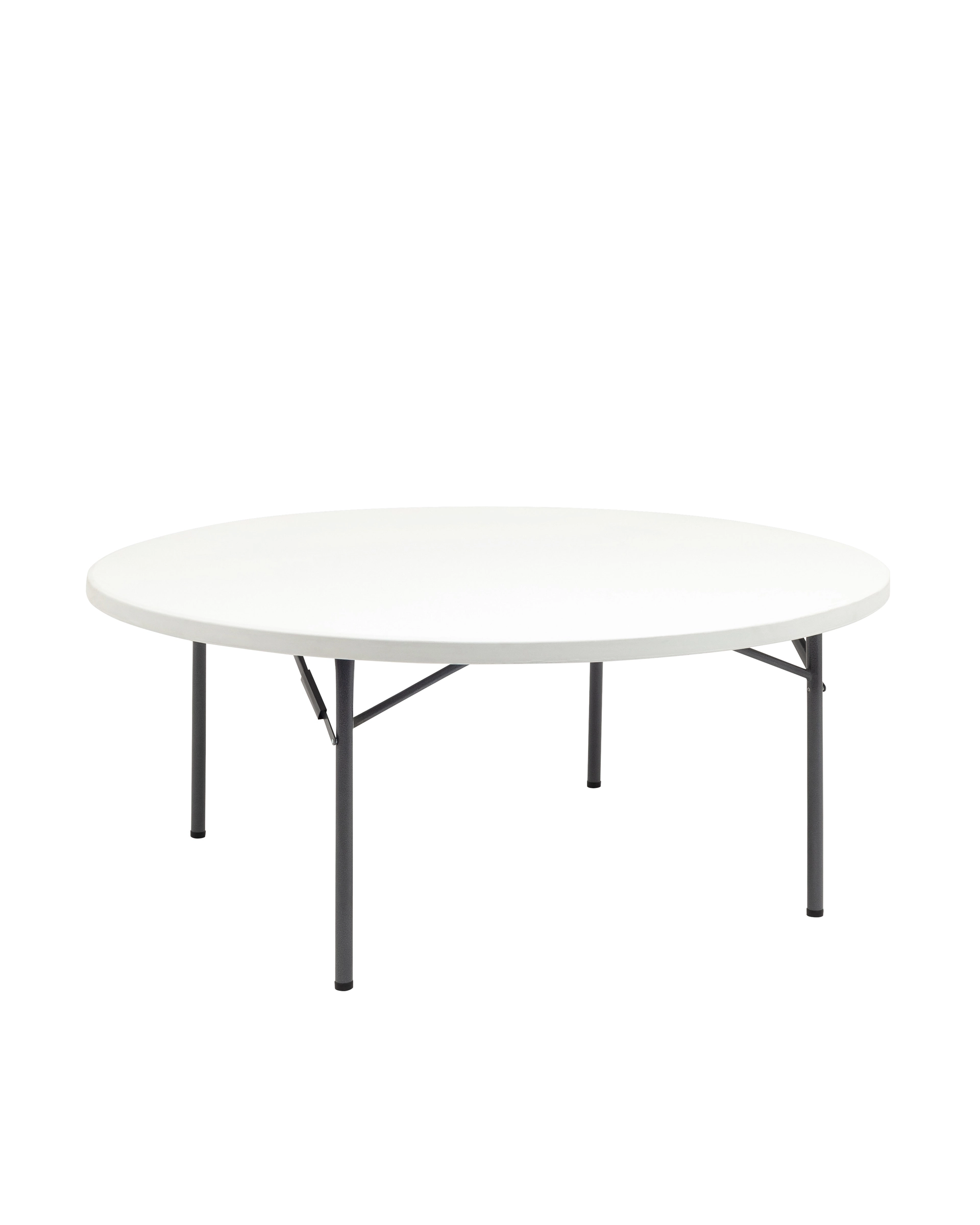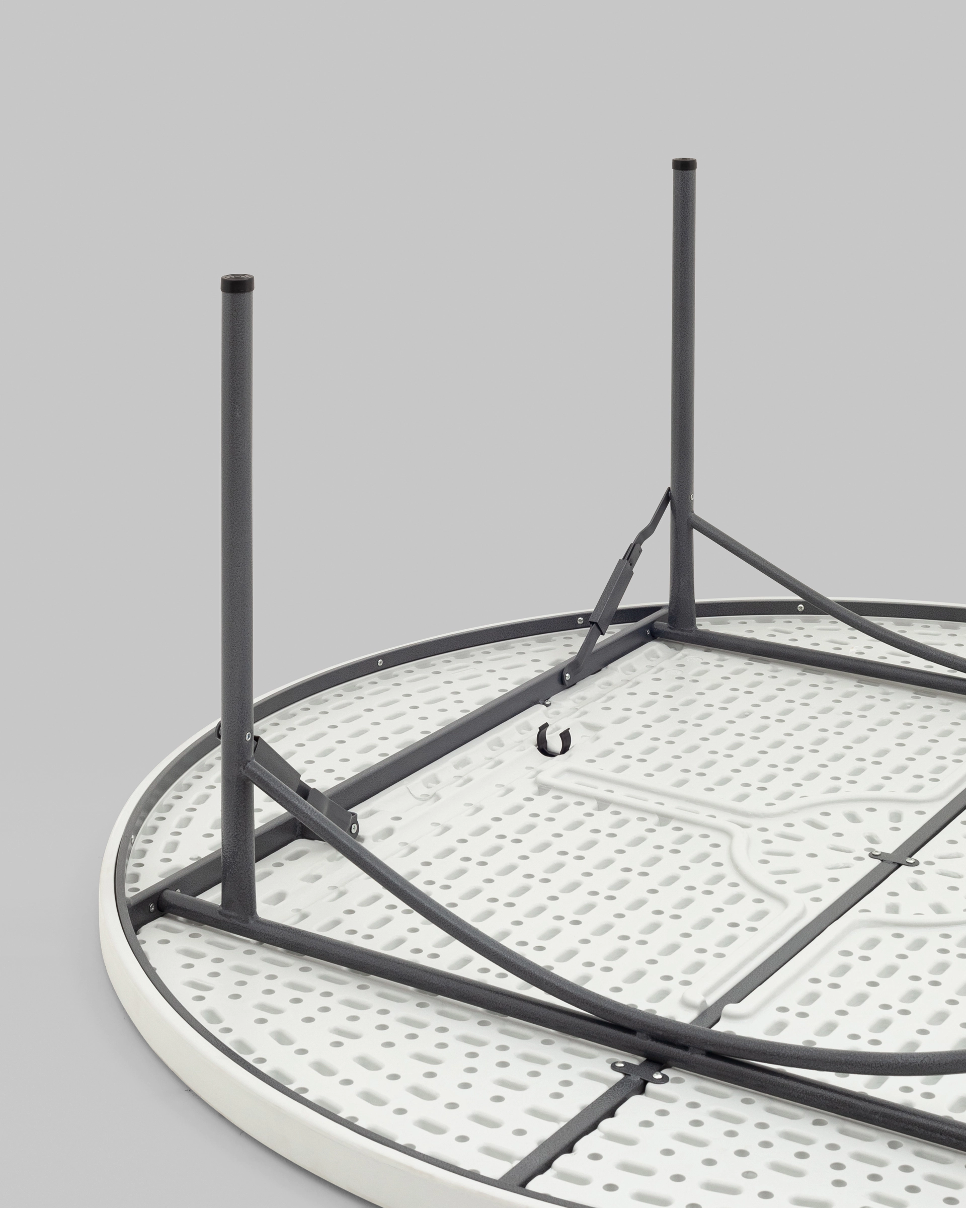 Стол круглый, 180*74 см. Для каркаса используется стальная труба особой прочности 32*1 мм, а столешница, толщиной 5 см, выполнена из 100% не переработанного полиэтилена HDPE (полиэтилен высокой плотности). Считается одним из более безопасных видов пластика. HDPE пластик выдерживает высокие нагрузки, не трескается при ударной нагрузке, эластичен в диапазоне температур от –70 до +100 °С.