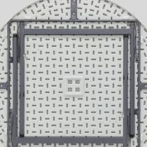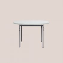 Стол круглый, 116*74 см. Для каркаса используется стальная труба особой прочности 32*1 мм, а столешница, толщиной 5 см, выполнена из 100% не переработанного полиэтилена HDPE (полиэтилен высокой плотности). Считается одним из более безопасных видов пластика. HDPE пластик выдерживает высокие нагрузки, не трескается при ударной нагрузке, эластичен в диапазоне температур от –70 до +100 °С.