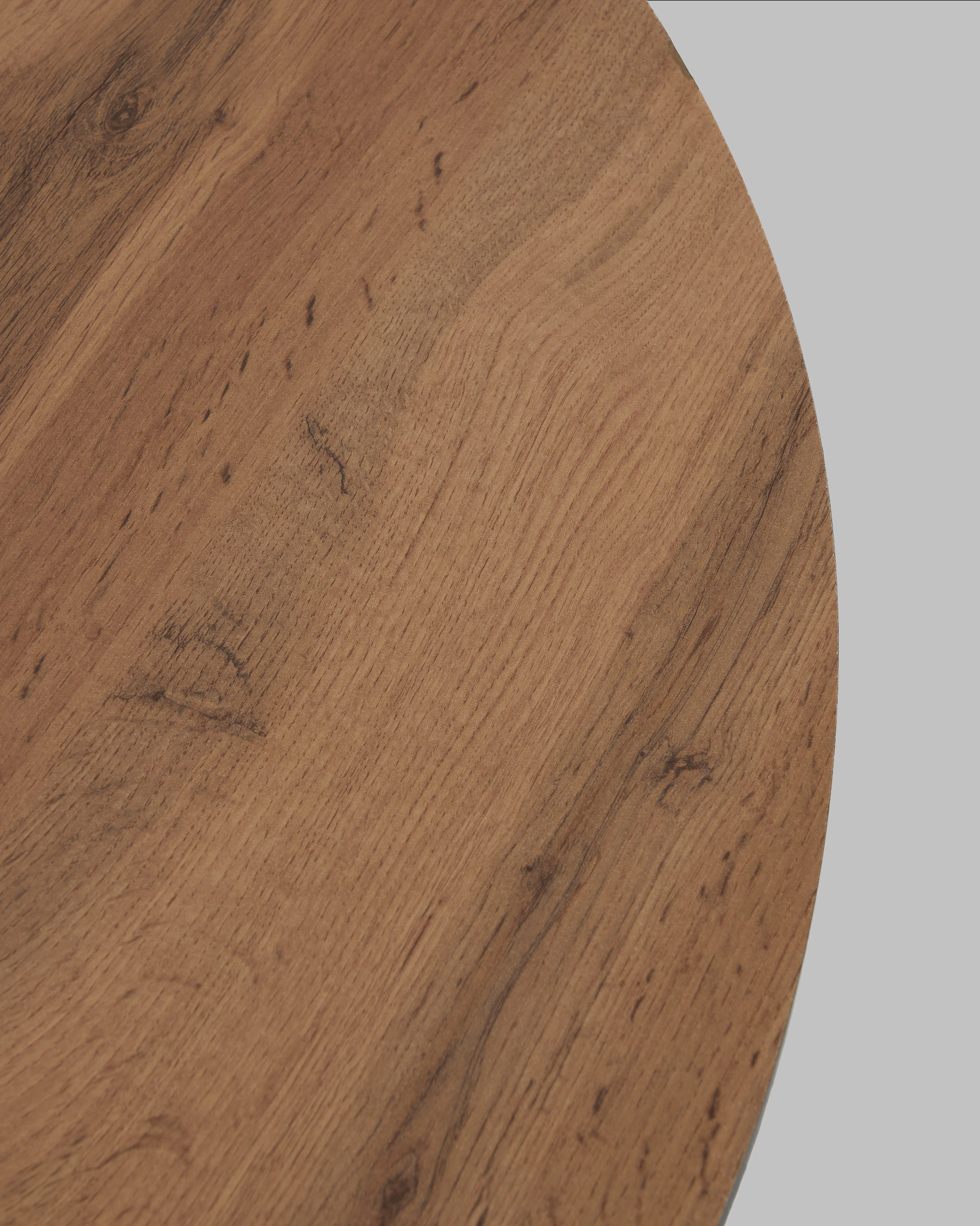 Основание стола изготовлено из прочного металла, а верхняя часть ножки покрыта HPL в цвет дуб вотан – это обеспечивает не только визуальную гармонию с поверхностью, но и дополнительную устойчивость к внешним воздействиям.