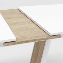 Дополнительная вкладка стола выполнена из МДФ с бумажным шпоном цвета беленого дуба. На вкладке предусмотрена петля для комфортного открытия стола одной рукой.