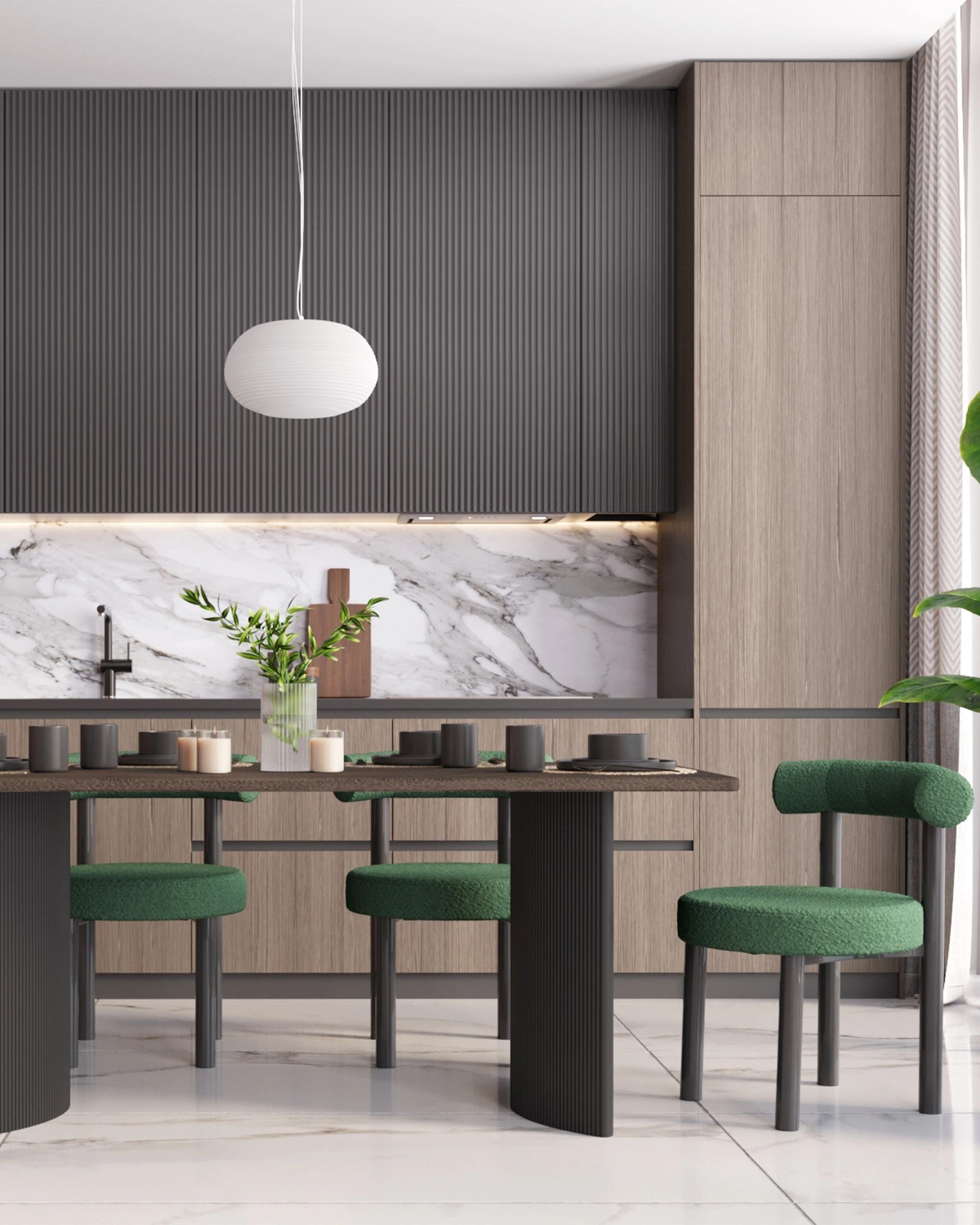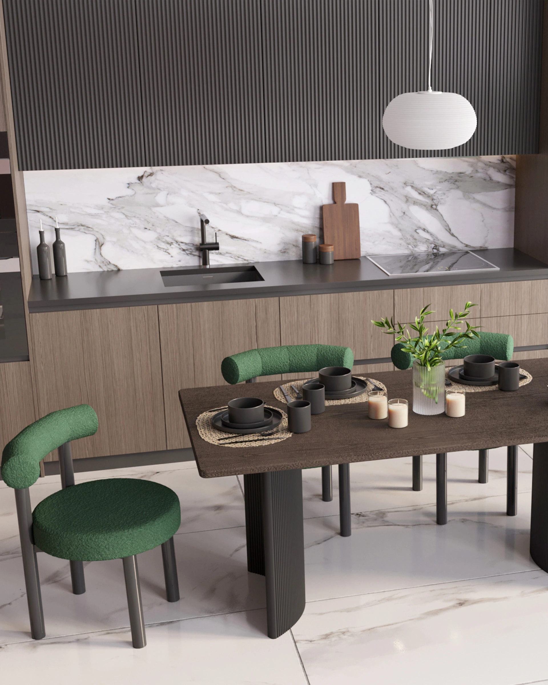 Универсальность и применение. Современный дизайн с акцентом на минимализм идеально вписывается в современные интерьеры кухни, обеденных зон или гостиной, а также для ресторанов или кафе. Темный оттенок дерева добавляет элегантности и станет украшением вашего интерьера.