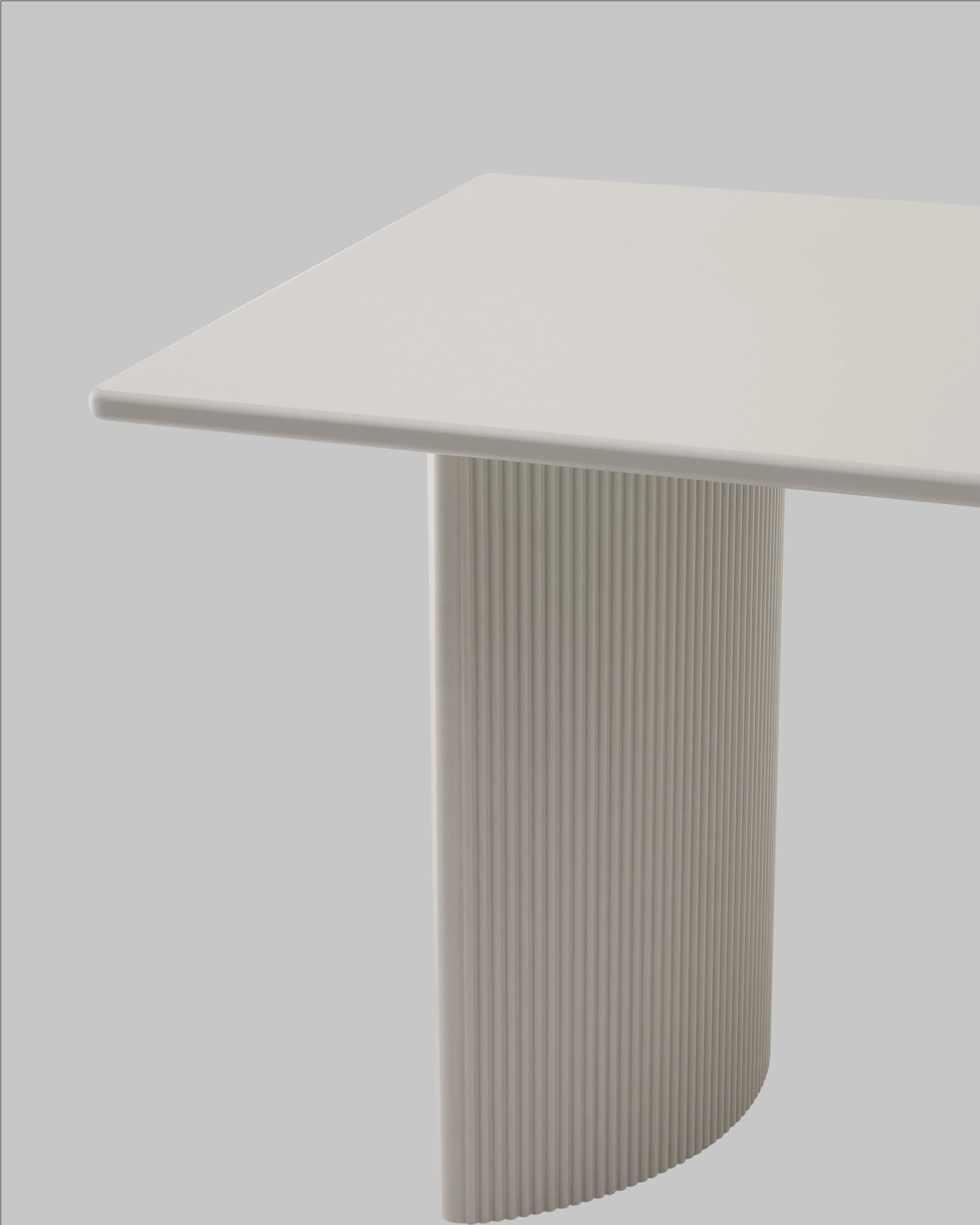 Материалы и дизайн.Столешница выполнена из высококачественного МДФ с покрытием 3D бумагой, что придает столешнице элегантный внешний вид. Толщина столешницы составляет 2,5 см, обеспечивая прочность конструкции. Прямоугольная форма и оригинальные ножки из МДФ с эффектом плиссе добавляет изюминку в общий облик. Нежный бежевый цвет стола делает его универсальным для различных зон — от дома до общественных пространств.