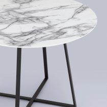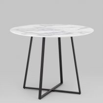 Лаконичный обеденный стол для кухни. Круглая столешница с рисунком белого мрамора выполнена из МДФ – прочного, экологически безопасного материала, который устойчив к перепадам температур и повышенной влажности. Поверхность столешницы декорирована рисунком белого мрамора, который идеально сочетается с металлическими ножками в черном цвете. Защитные подпятники на ножках предотвращают порчу напольного покрытия.