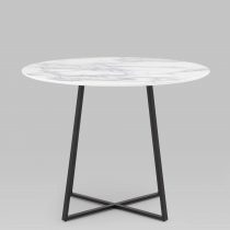 Стол обеденный Дакота 100*100 белый мрамор ножки черные