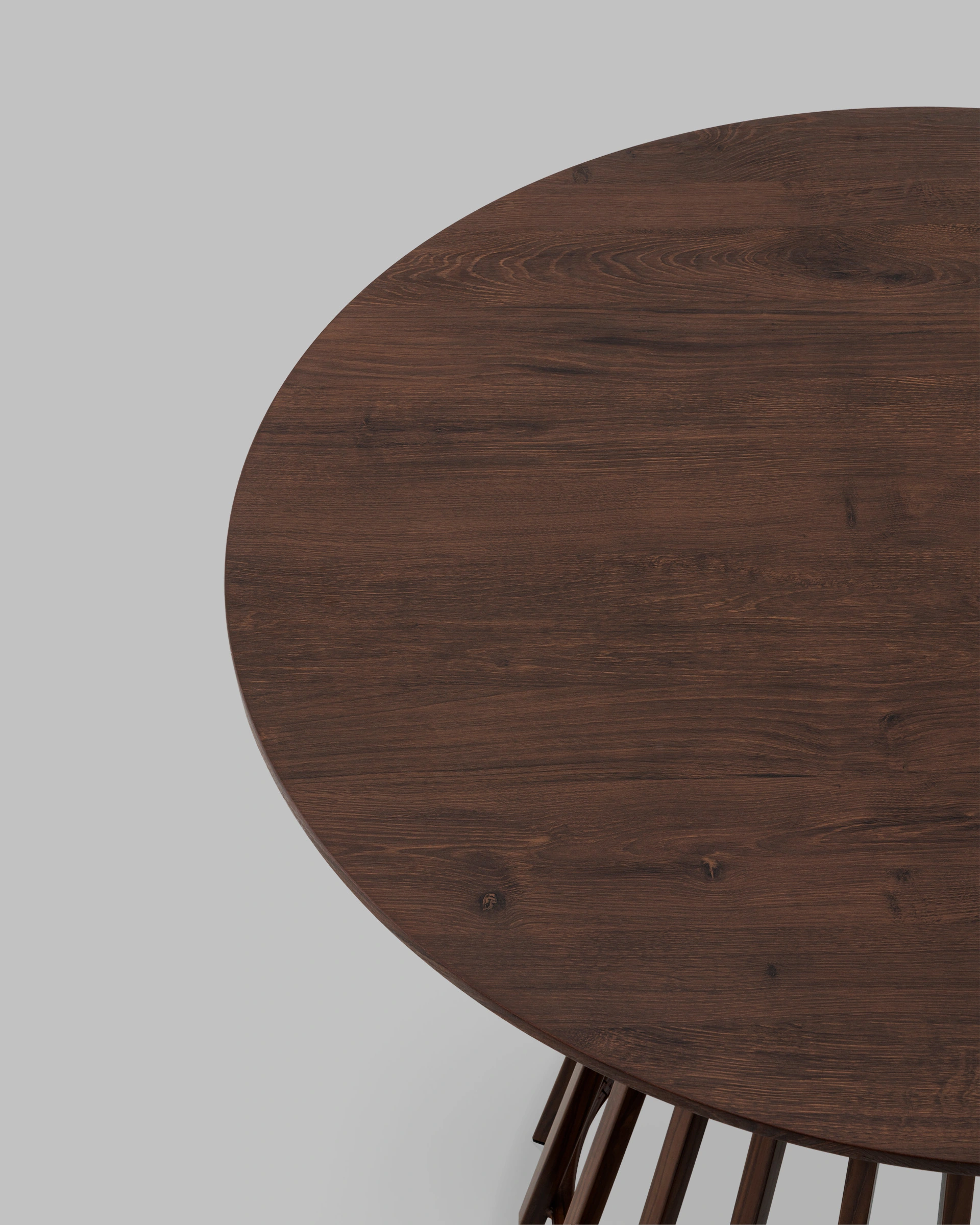Материалы и дизайн.Столешница стола выполнена из высококачественного МДФ с покрытием 3D бумагой толщиной 2.5 см. Круглая форма в сочетании с уникальной металлической ножкой создают стильный и изысканный образ. Цвет ореха прекрасно гармонирует с любым интерьером, от классических до современных.
