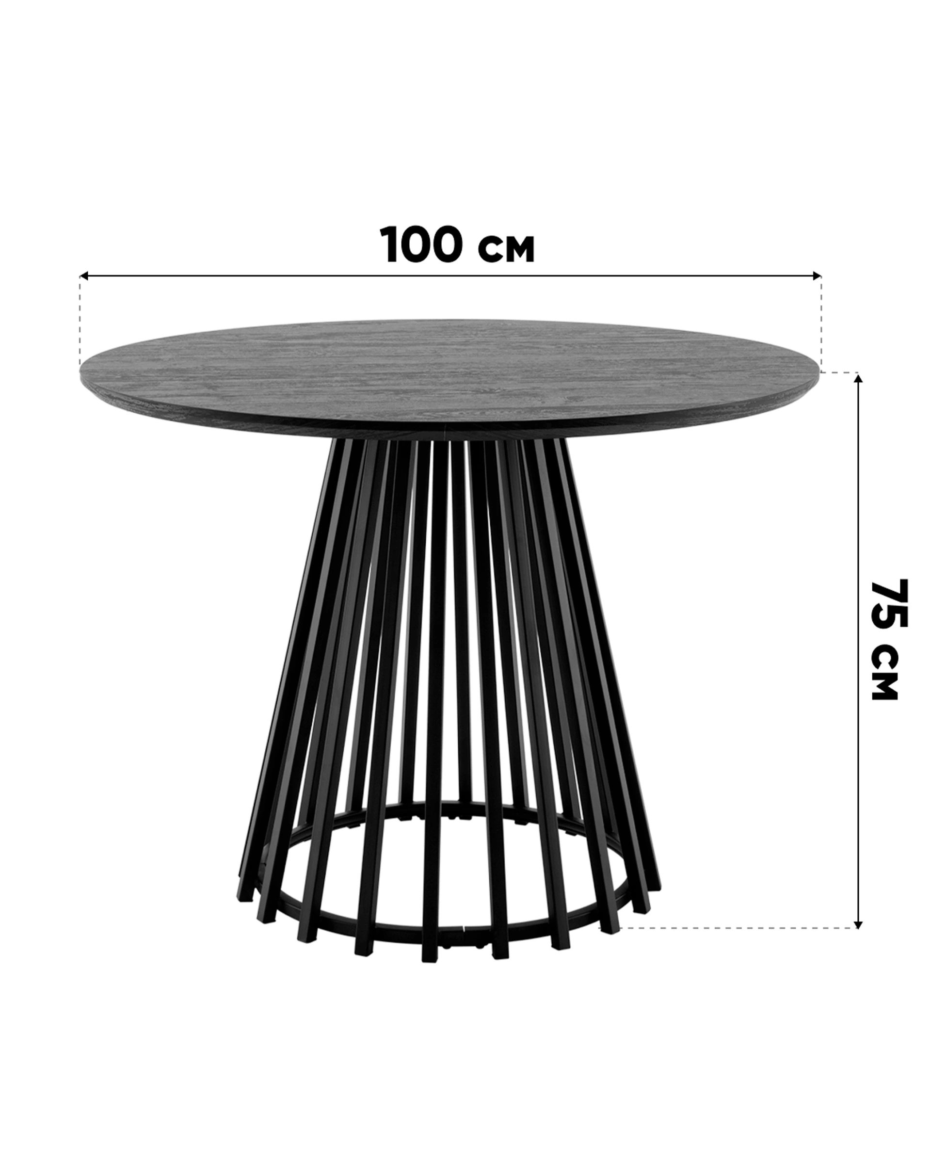 Надежность и удобство.Стол придется по душе каждому благодаря своему неповторимому стилю и устойчивости (способен выдерживать нагрузки до 100 кг). Диаметр стола 100х100 см и высота 75 см идеально подходят для комфортной обеденной зоны. Качественная отделка и прочная конструкция делают его отличным выбором для повседневного использования.