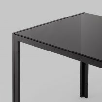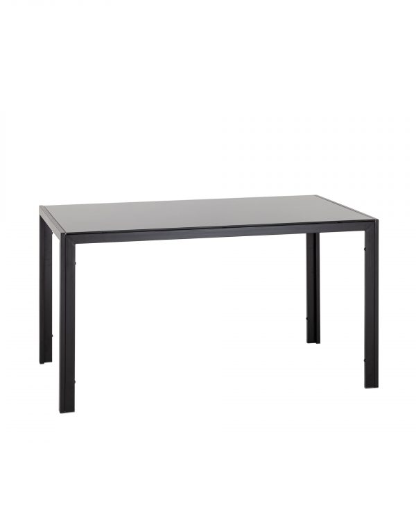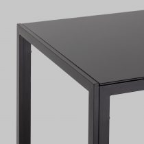Обеденный стол со стеклянной столешницей. Закаленное темное стекло выдерживает большие нагрузки, обладает высокой термоустойчивостью и прочностью. Стол украшают крепкие ножки, выполненные из металла, покрытые краской в черном цвете, что смотрится очень гармонично.