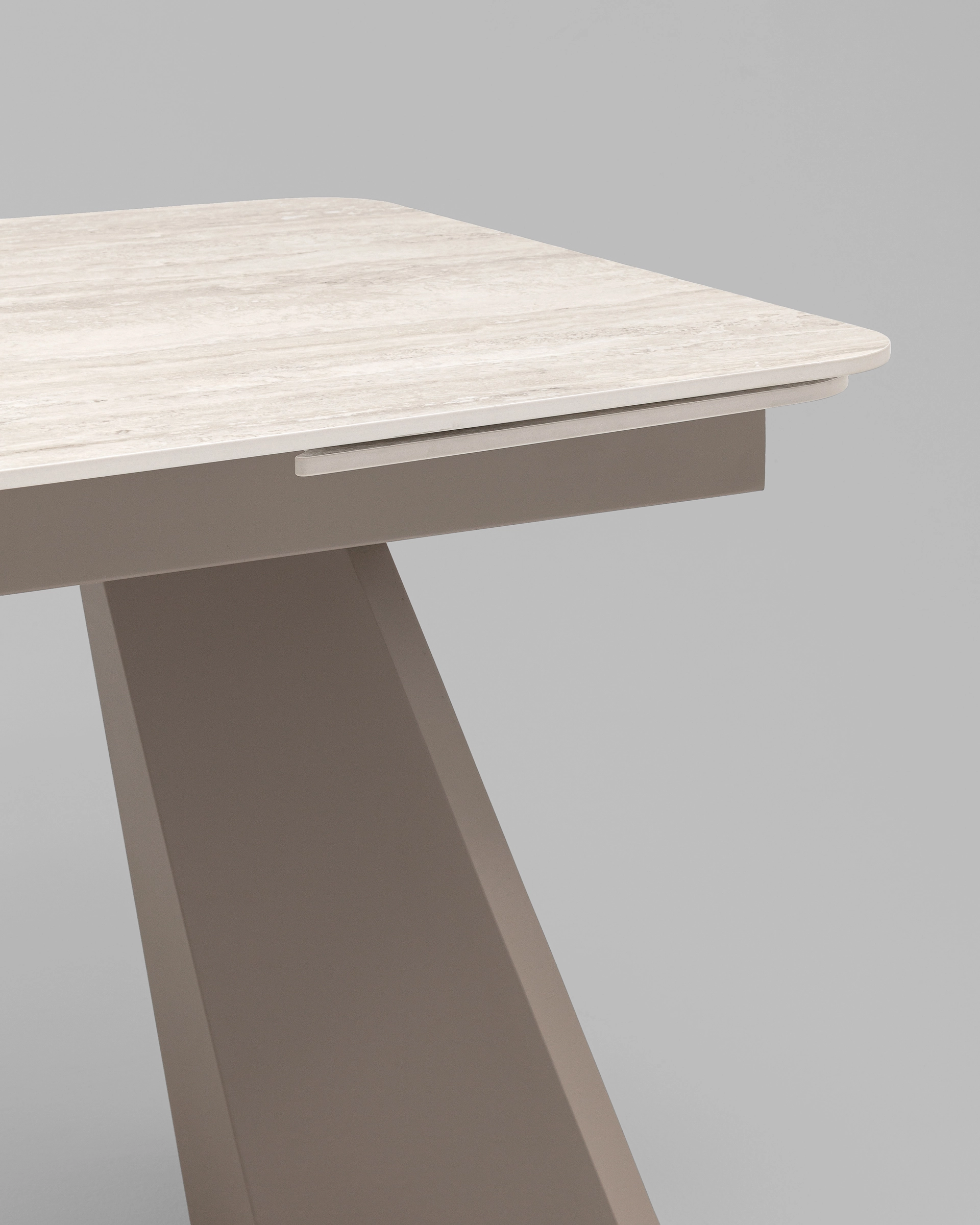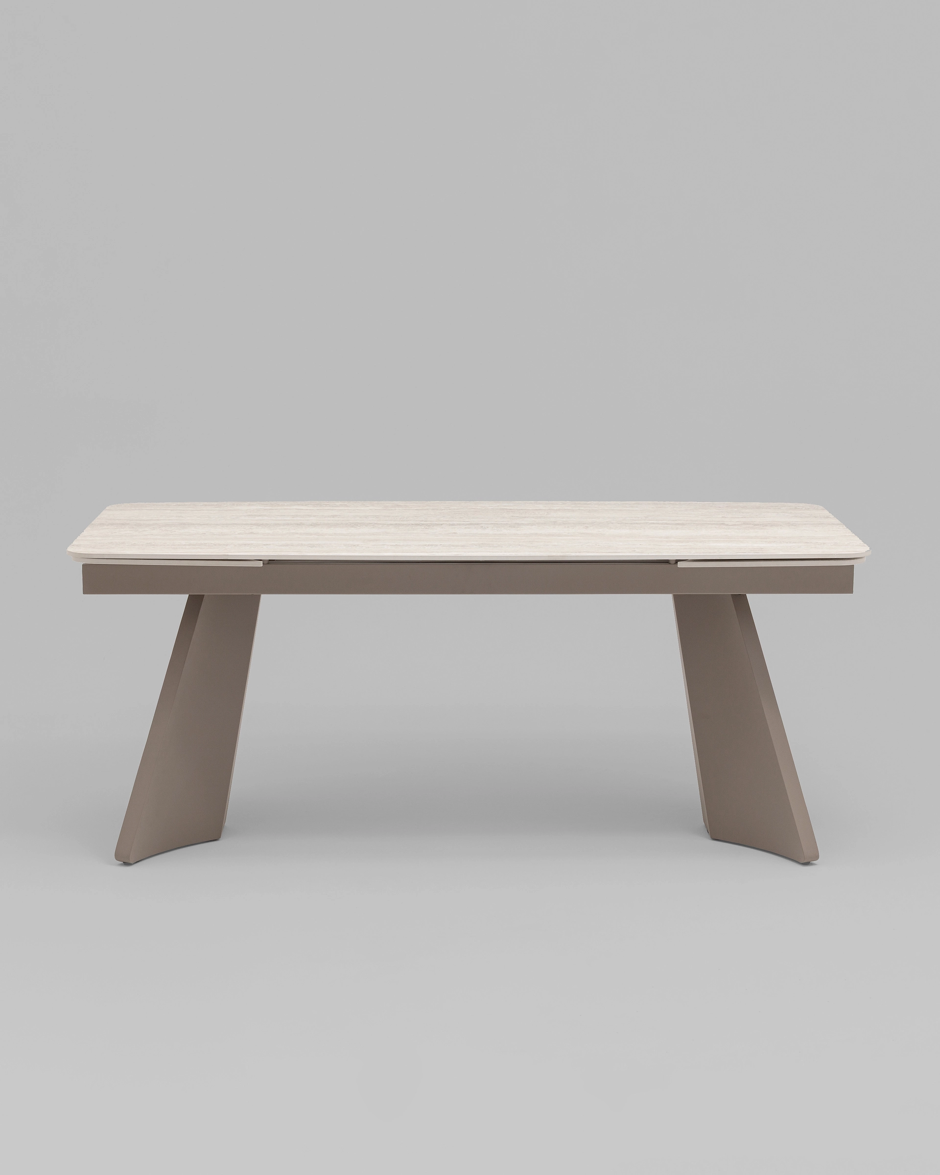 Материалы и дизайн. Столешница выполнена из прочной и износостойкой керамики серого цвета. Материал отличается устойчивостью к царапинам, влаге и высоким температурам, что делает стол идеальным для повседневного использования. Прямоугольная форма и серые металлические ножки создают гармоничный и стильный дизайн. Геометрия ножек обеспечивает устойчивость, а их наклонная конструкция добавляет изюминку в общий облик.